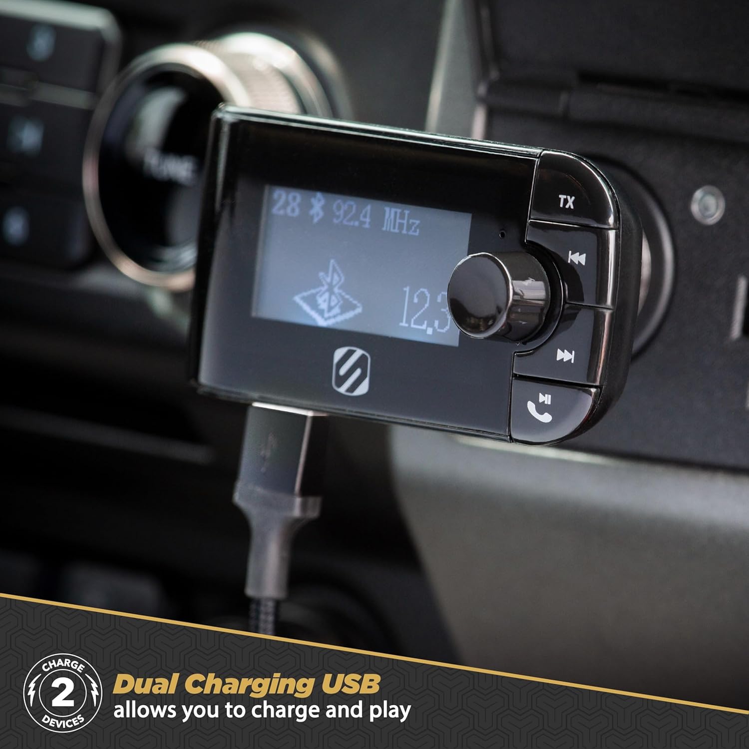 Scosche SBTFM2-XCES0 Select Bluetooth 5.0 FM Transmitter w/ Dual USB Charger Ports, LCD Screen & Aux Port, Wireless Radio Bluetooth Audio Adapter, Hands-Free Car Kit for Phone Calls & MP3 Music Player