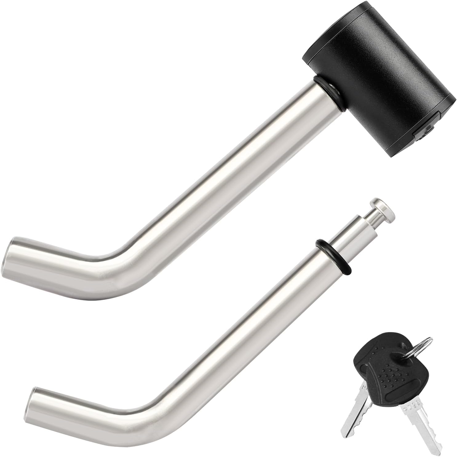 - [Compatible with Most Hitches] The reciever lock is compatible with all I/II 1-1/4" x 1-1/4", III/IV/V 2" x 2" and 2-1/2" x 2-1/2" receivers (1/2" and 5/8" pin), suitable for bike rack and tray tow rope for trailer, truck, car, and boat.