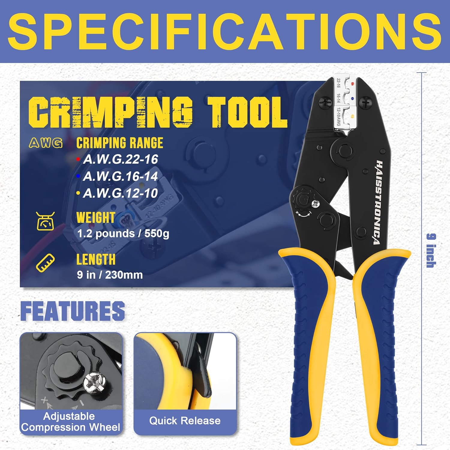 haisstronica Crimping Tool for Insulated Electrical Wire Connectors-AWG 22-10 Ratchet Crimper Tools-Racheting Wire Crimping Tools-Available for Insulated Connectors and Wire Terminal HS-9327