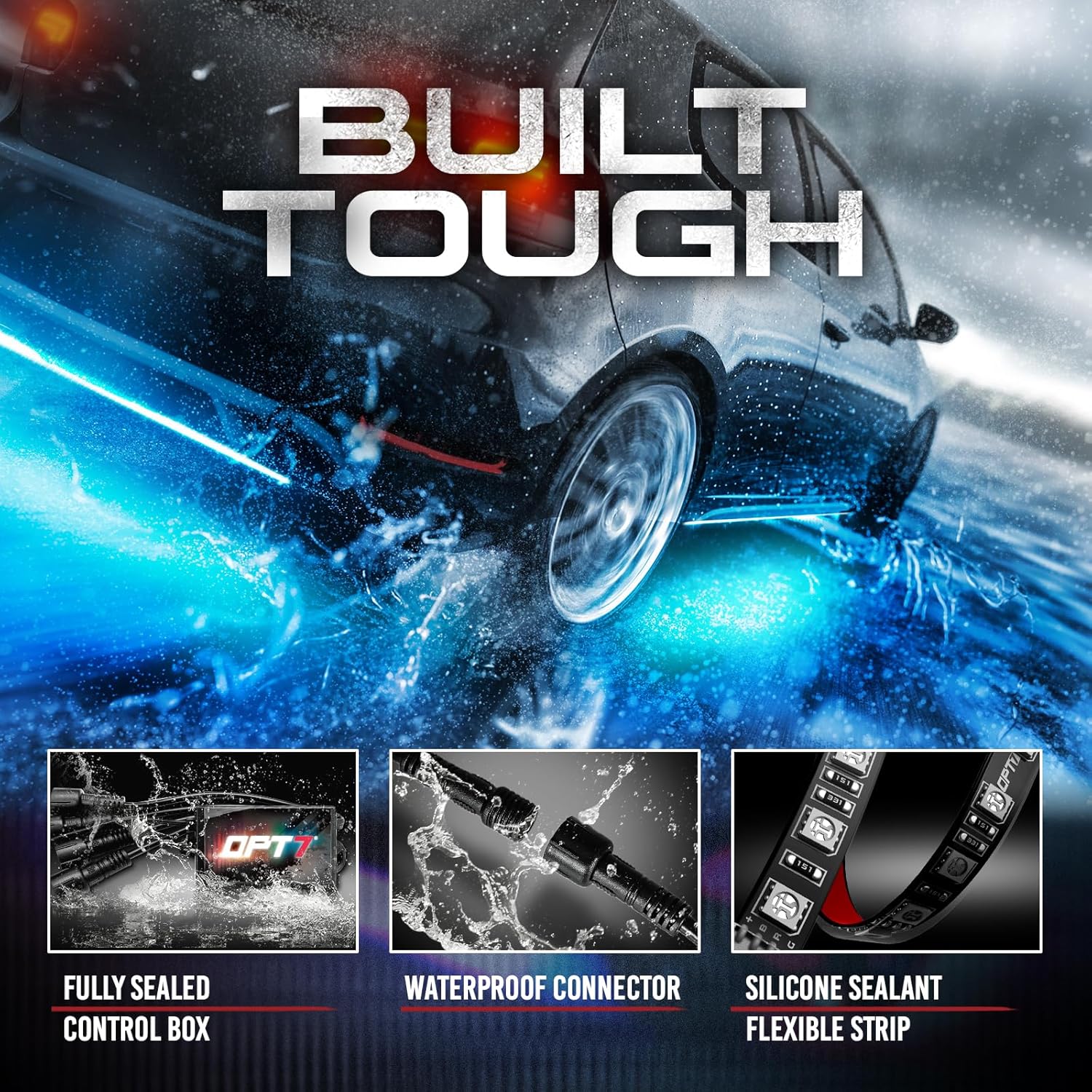 - [Dual Control: Multi-Colors & Modes] Unlock endless lighting possibilities with both handheld remote and OPT7 GLOW APP at your fingertips! Discover limitless lighting options with vibrant animated effects and infinite color choices. Easily customize your car's lighting to match any mood and sync with your music for an unforgettable experience. Ideal for parties or a night out—transform your ride today!