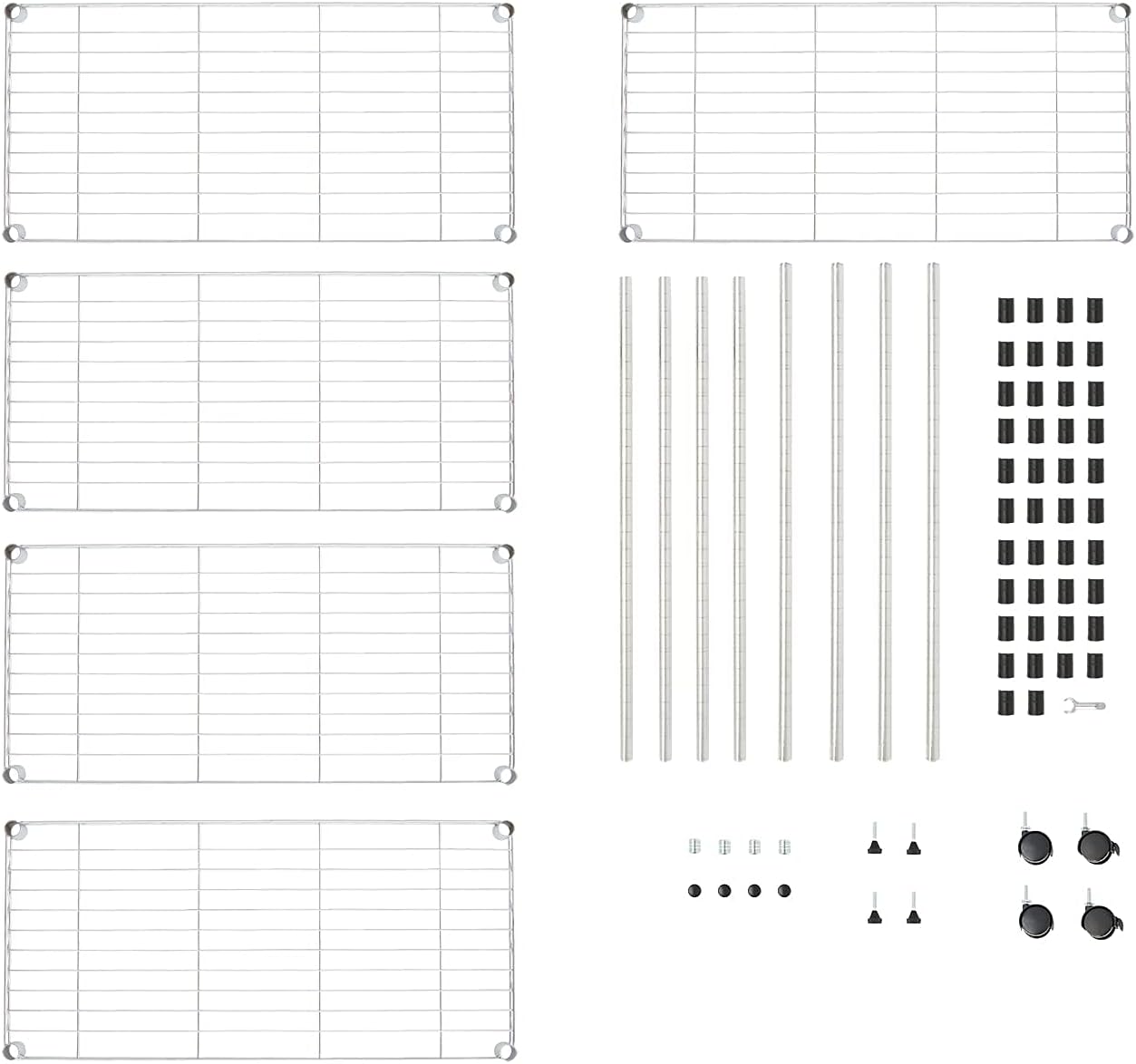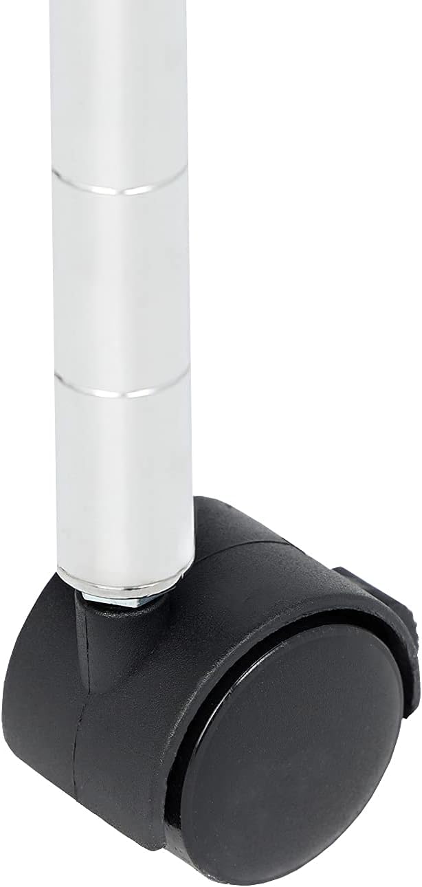 - Our (CHROME FINISH) heavy duty standing wire rack shelving units include 4 rubber casters wheels (2 Locking) for easy mobility as well as 4 leveling wide feet that is perfect for your garage, bedroom, kitchen shelf plans, pantry shelving organization