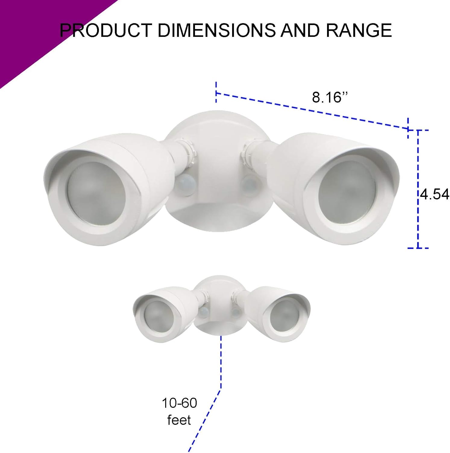- Product specifications and technical details constitute the following Height – 4.54 inches, Width – 8.16, Weight – 2.41 lbs and features an Extension of 8.80 inches. The Security Flood Light is non-dimmable and features a built-in surge protection of 2KV. The security light is IP65 rated which can withstand any weather conditions and also Energy Star certified which delivers a product life of 50,000 Hours long-lasting light.