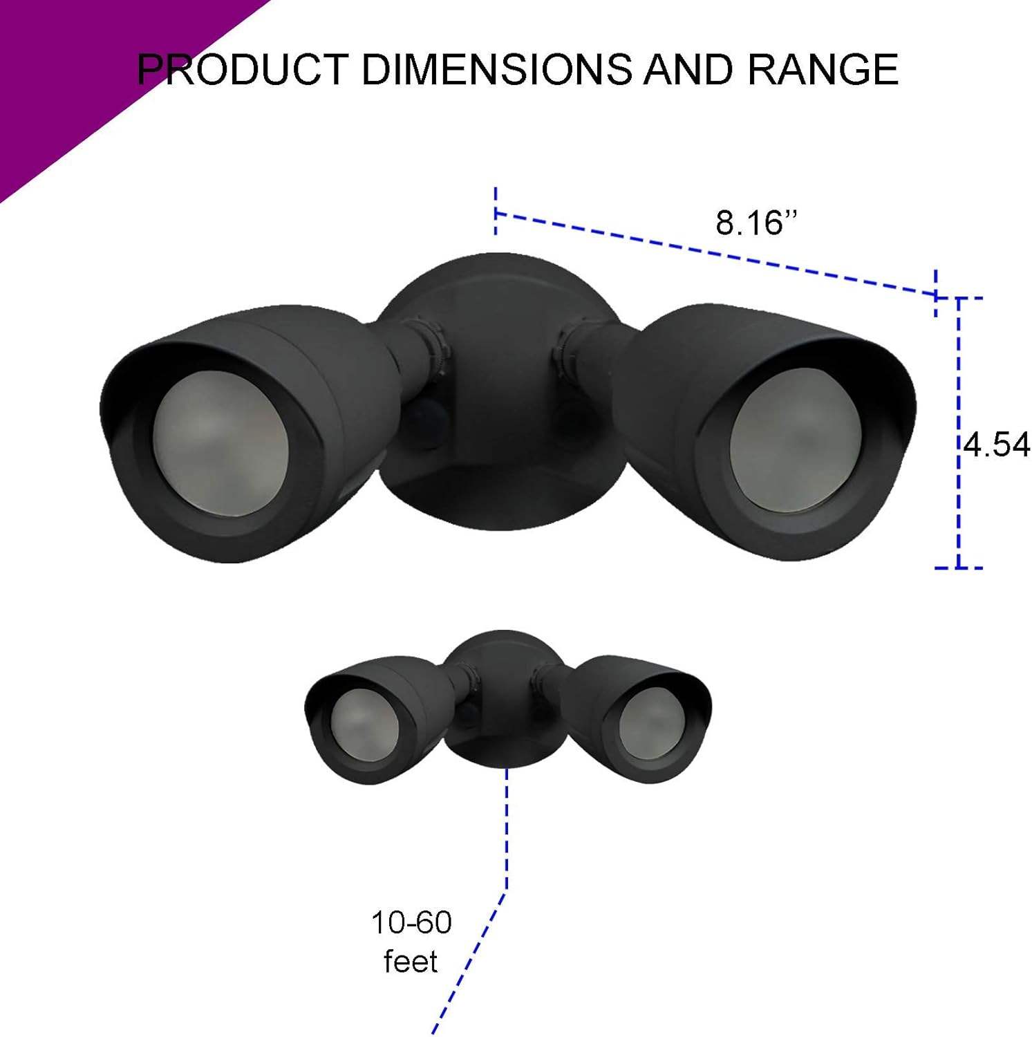 Ciata Flood Lights Outdoor, 20-Watt LED Bullet Head Security Flood Lights, Dual Head, RoHS and FCC Complaint, IP65 Rated, 1900 Lumens, 2KV Surge Protection, Die-Cast Aluminum in Black Finish – 3000K