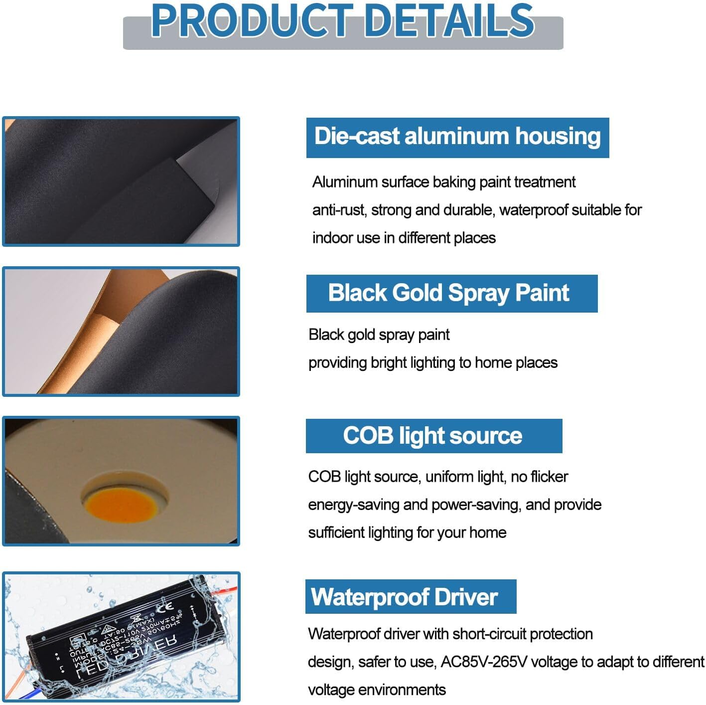 - LED light Source and Drive:Modern outdoor sconce power:2x10W, high quality COB chip, 3000K color temperature, 2200Lm, up and down light, beam soft uniform, low energy consumption; waterproof driver: use short-circuit protection design to ensure safe use; Voltage: AC 85V-265V, adapt to different voltage environments(Note: wall light not dimmable)