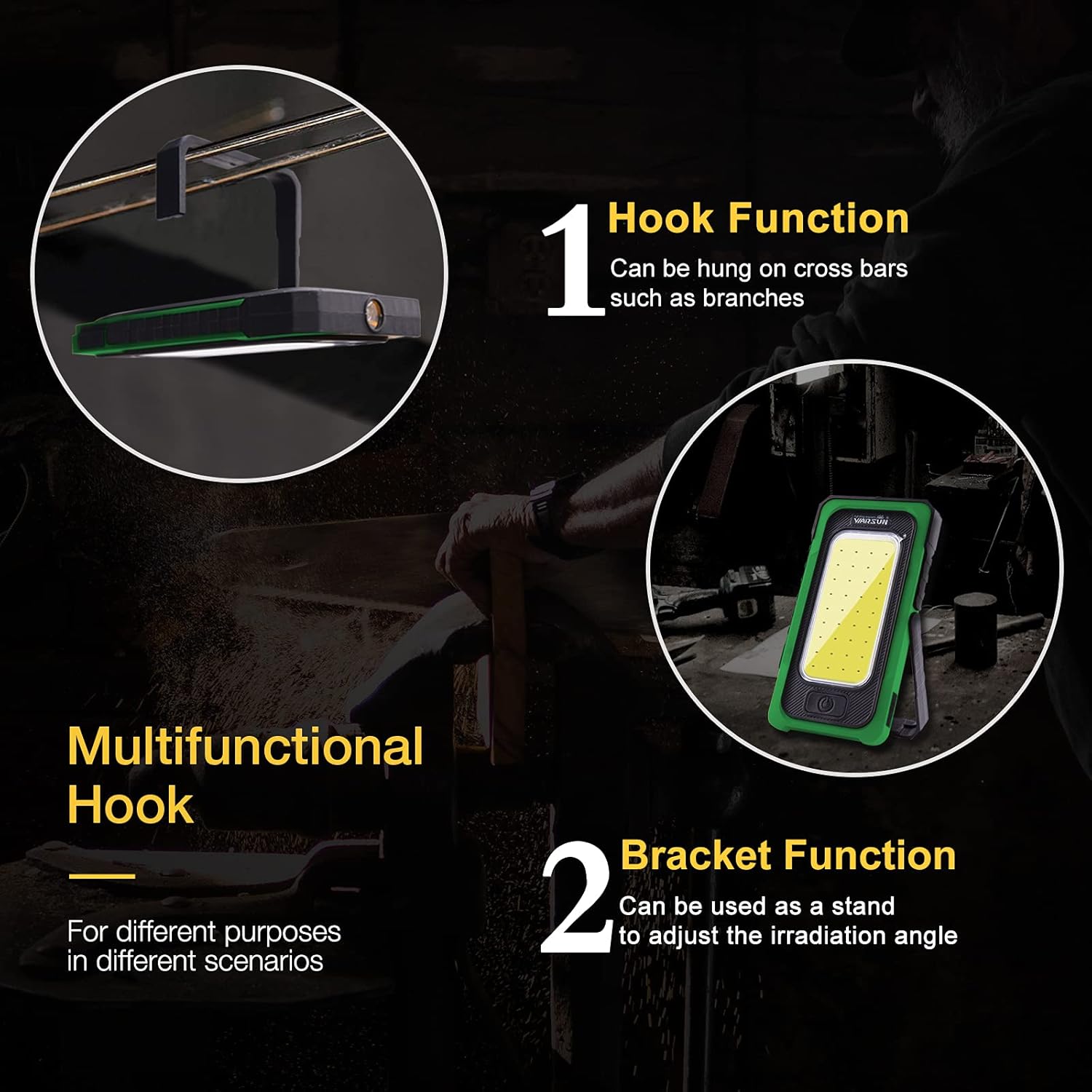 - 【Powerful Brightness】The COB panel of the led light provides maximum brightness of 1500 lumens and covers an impressive 500sq.ft. area. You'll never have to worry about being in the dark with this rechargeable work light.