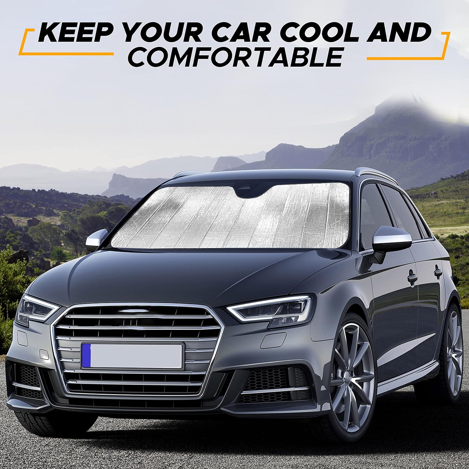 - Preserves Car Interiors & Dashboard: Made of premium reflective aluminum foil, this accordion windshield sun shade offers reliable protection against the sun's harmful rays. The sunshade for car windshield keeps your vehicle's interior pristine by preventing damage caused by UV exposure and excessive heat, preserving the comfort and longevity of your car.