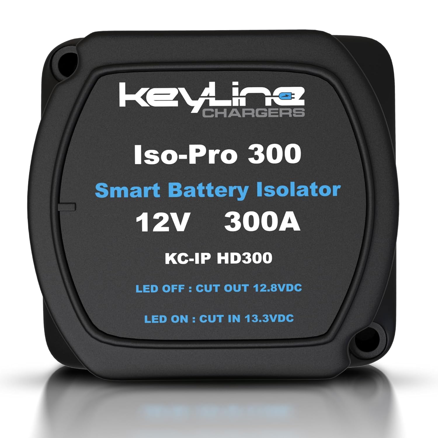 - Do you have more than 150 amp hour capacity of auxiliary battery? Do you need even MORE power and amperage for your additional accessories or inverters? When our standard 140 amp isolator isn’t enough, you need the Heavy Duty Keyline 300 amp isolator. Key line Chargers has the ONLY 300-amp Dual Battery Isolator on the market! Our 300-amp Dual Battery Isolator is the BEST charging solution for high capacity dual battery systems.