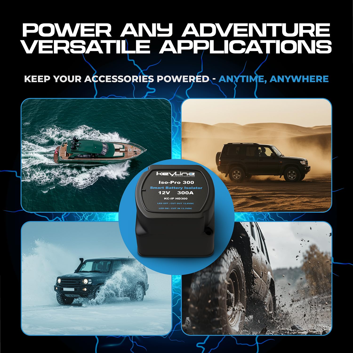- Unlike other isolators on the market, the Keyline Pro HD Automatic 300 Amp Dual Battery Isolator is IP65 Certified. This international Protection rating means that your Keyline isolator is safe for use even for your off-road needs in dusty, wet, and unexpected extreme weather environments. This compact battery isolator was built ultra-small to fit almost anywhere! A perfect fit under the hood or anywhere to get close to your batteries.