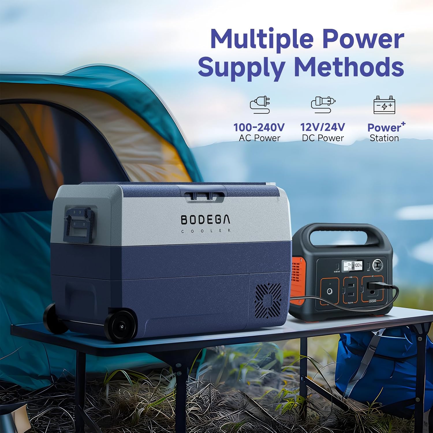 - Support: We have a professional technical support team responsible for the portable car freezer.BODEGACOOLER car fridge 12v is equipped with 120/240V AC and 12/24V DC adapters, which can be used at home or in the car.The RV freezer line length is about 2.6m.