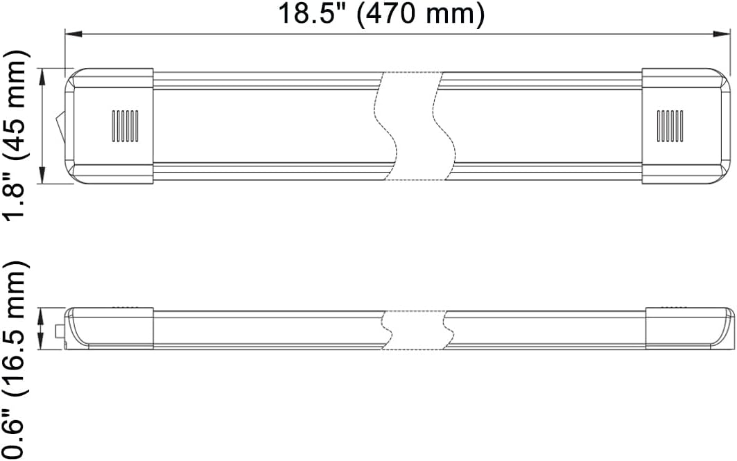 LED Interior Utility Light Fixture 18.5" x 2.6", High Lumen-Output Low Current Draw Energy Efficient, Frosted Lens 6000K Cool-White Even Diffused Beam, On/Off Rocker Switch 12V-24V DC, 1-Pack