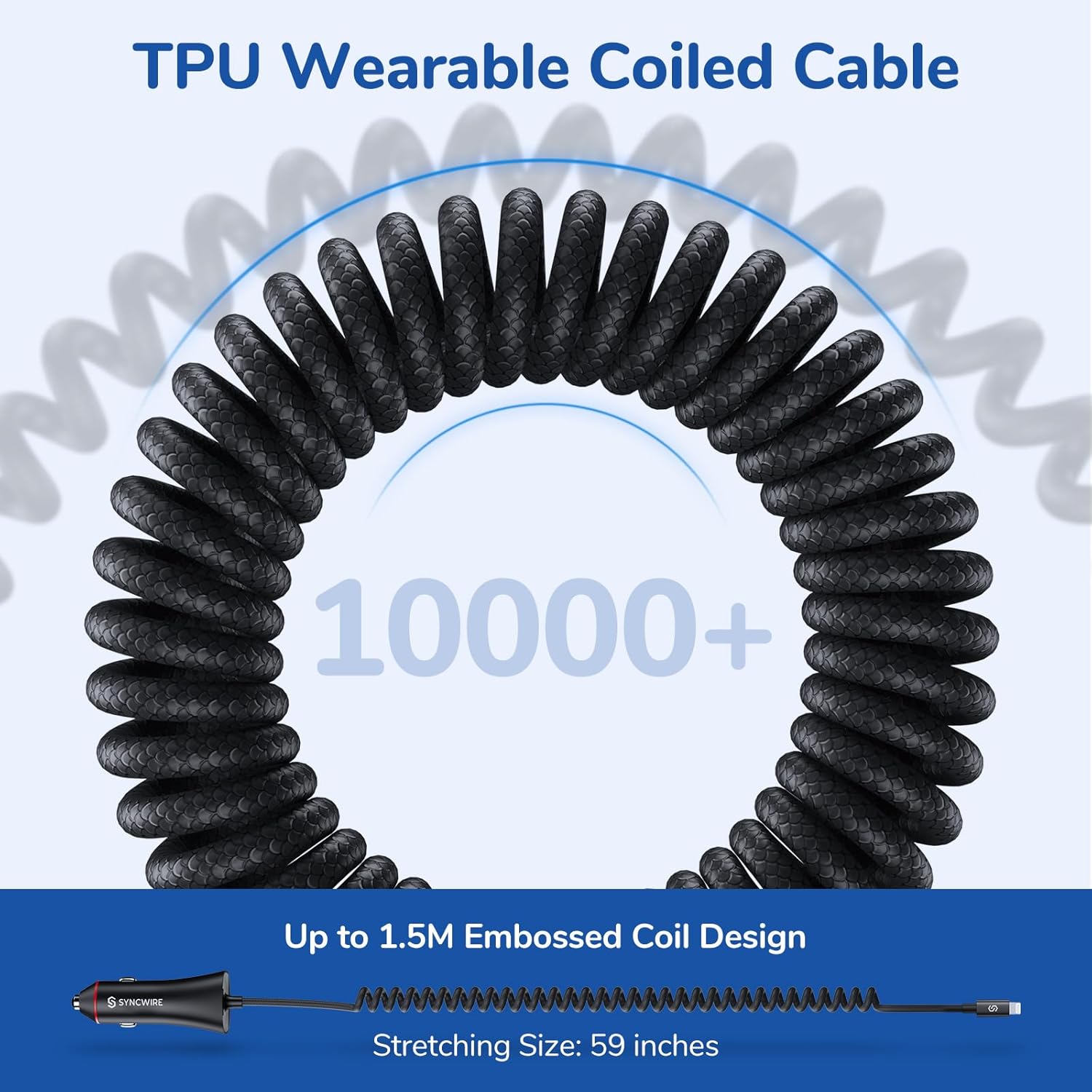 [Apple MFi Certified] Syncwire iPhone Car Charger 32W Super Fast Car Phone Charger Cigarette Lighter USB Car Adapter with Build-in 5FT Coiled Lightning Cable for Apple iPhone 14/13/12/11/XR/Max, iPad