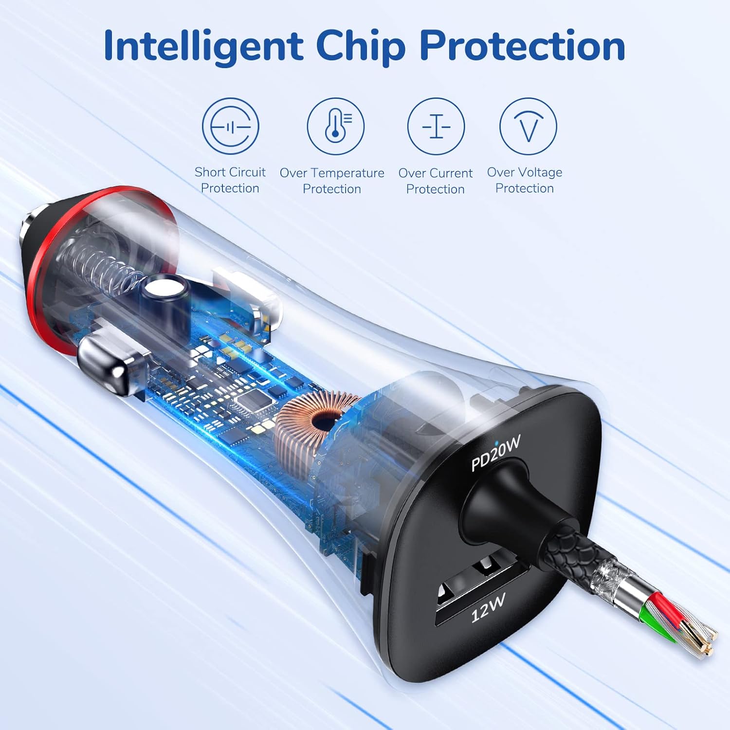 - ăEFFICIENT QUICK CHARGINGăSyncwire 32W iPhone Car Charger can support PD 20W ïŒ9V=2.22AïŒand extra USB 12W output. The PD 20W port with lightning cable equipped with Apple MFi Certified C94 chip, can perfectly adapt to iPhone 14/13/12 series, iPad Pro and Airpods Pro, which has 4X faster than most normal ones. It can charge your iPhone 13 Pro from 0% to 58% within 30 minutes.
