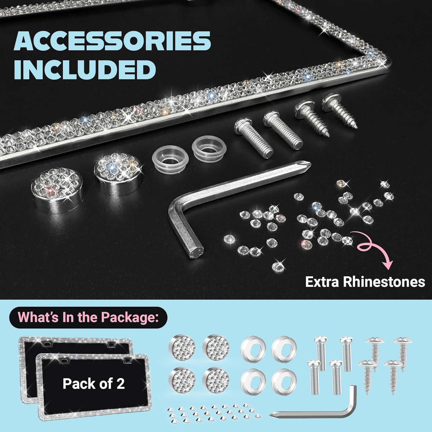 - Screw & Bling Cap Accessories Included: Includes multiple screws, blingy caps, and extra rhinestones in multiple sizes for a flawless, secure fit—making installation a breeze.