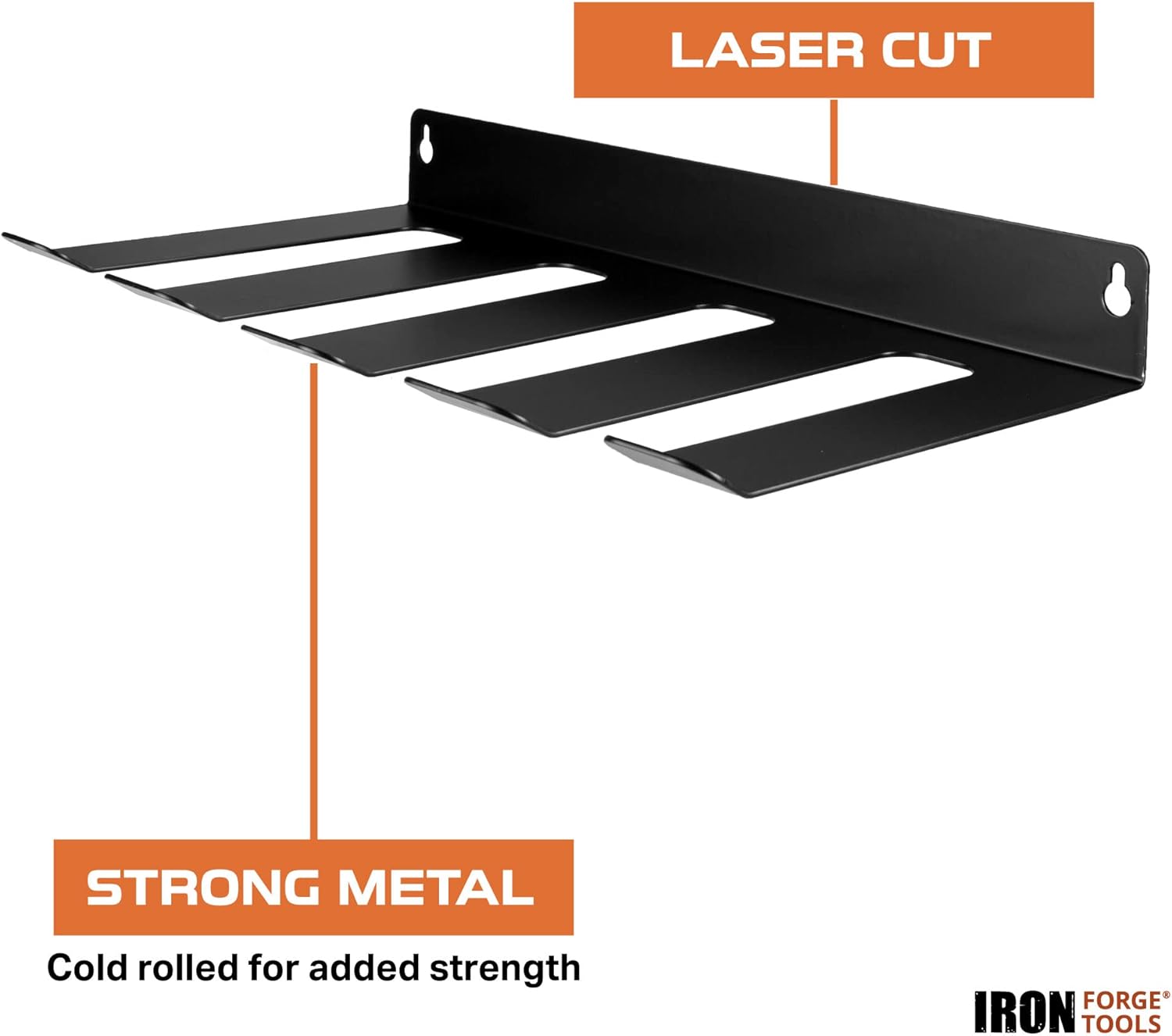 - Extra Storage Rack: Iron Forge storage rack can hold at least 5 drilling tools, which have a distinctive design. A wall-mounted design makes excellent use of unused wall space and lets you see where your tools are. You may keep all of your often-used project tools nicely arranged and handy with the aid of this storage.