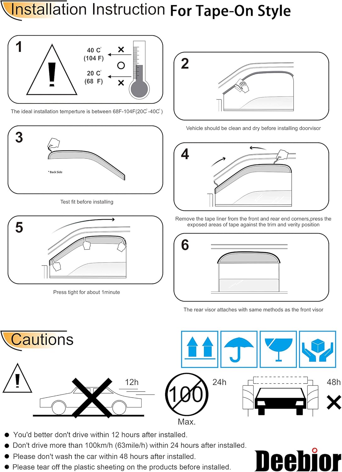 - MAKE JOURNEY ENJOYABLE: You can drive in comfort with our side Window Deflectors,without worrying about the noisy wind, chilly snow, annoying rain sprays,blazing sunshine.