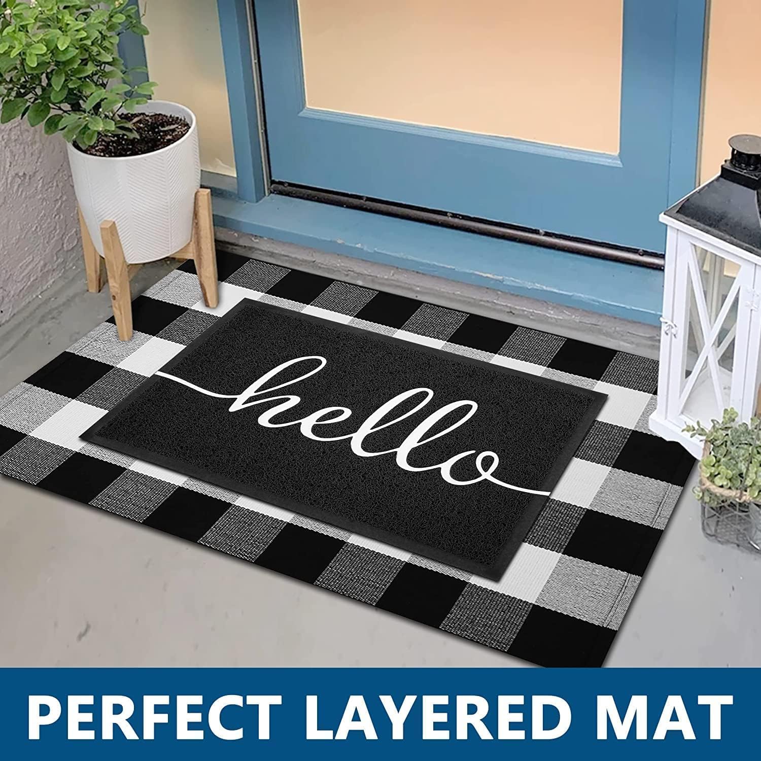EARTHALL Door Mat 2-Pack Outside Inside Hello Doormat 30"x17.5" Durable Floor Mat Non Slip Mat Ultra Absorb Mud Easy Clean Front Doormat for Garage, Entryway, Patio, High Traffic Areas, Black
