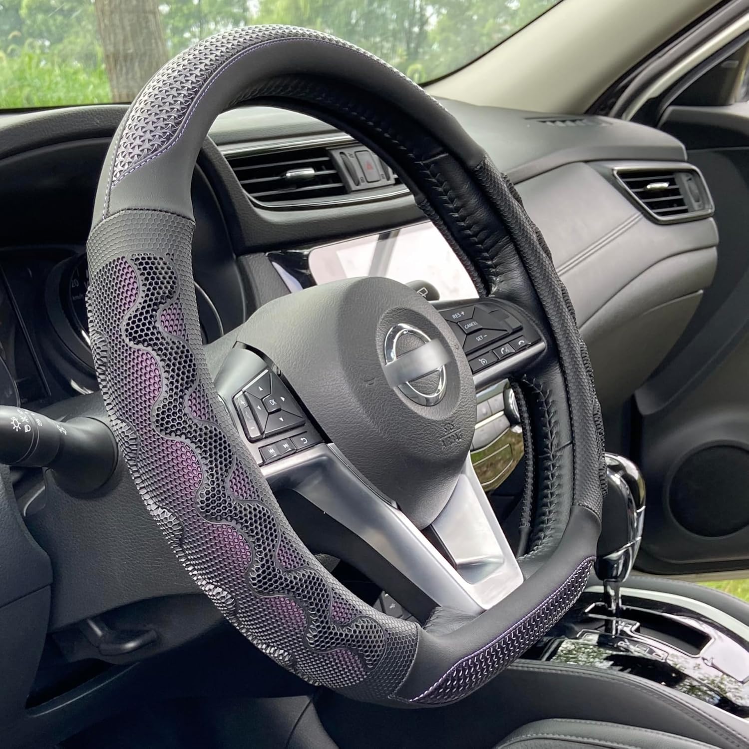 - Ergonomic Grip and Enhanced Skid Resistance: Experience unparalleled driving comfort with the breathable 3D silicone honeycomb design, providing a secure and ergonomic grip. The textured surface further enhances skid resistance, making it an ideal choice for those with sweaty hands, reducing hand fatigue on long journeys.