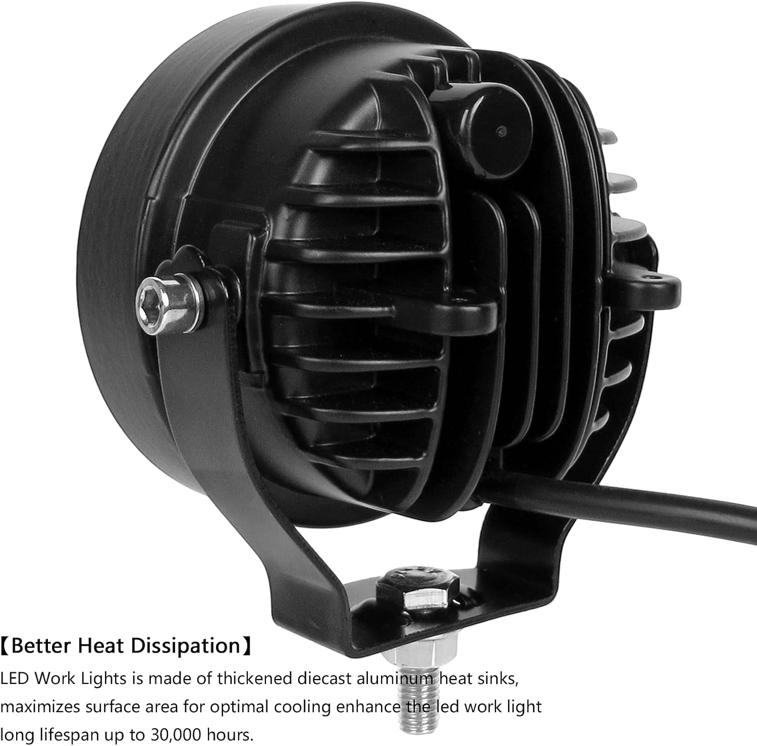 - 【SUPER BRIGHTNESS】 Compare with the same size another work light , this kind light have the most biggest real wattage,advanced High Power Led Chip give out bright and white ray for clear visibility.special designed lamp cup leads to wider illumination range, allowing you to see the left and right side clearly.