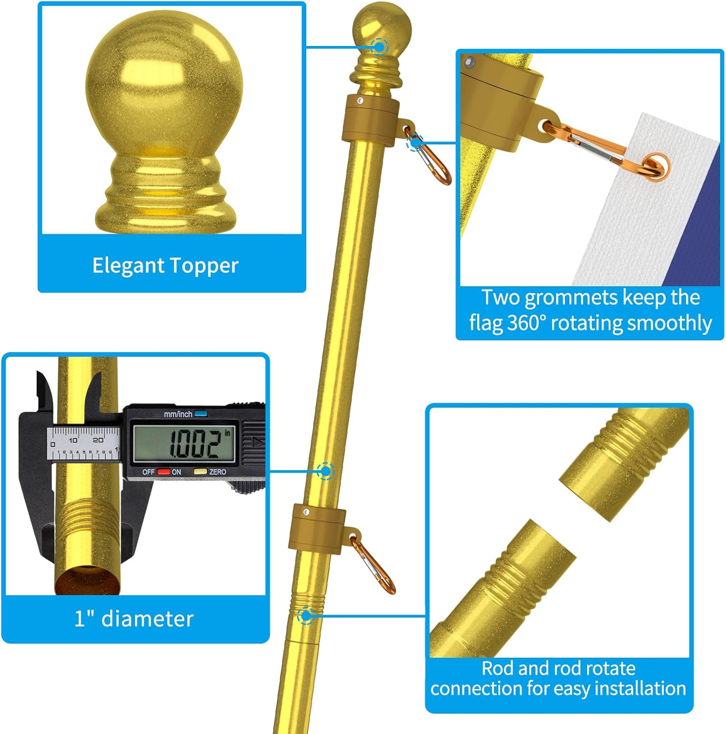 ZMTECH Flag Pole - Upgraded Bracket, 6 FT Stainless Steel Flag Poles for Outside House, Residential or Commerical, Tangle Free Flag Pole Kit for American Flag (Without Flag, Gold)