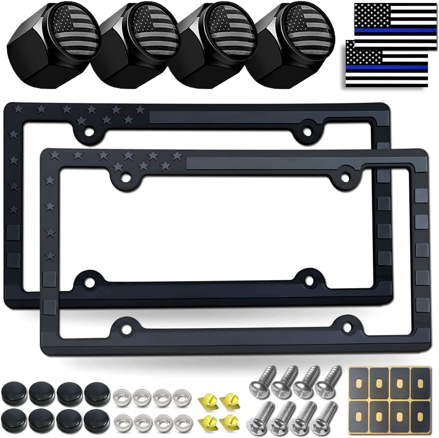 Black American Flag License Plate Frames- Patriotic USA Stars and Stripes Flag Plastic Car Tag Cover Holder with Mount Screws Caps for Truck/SUV, Auto Accessories for Veterans Military