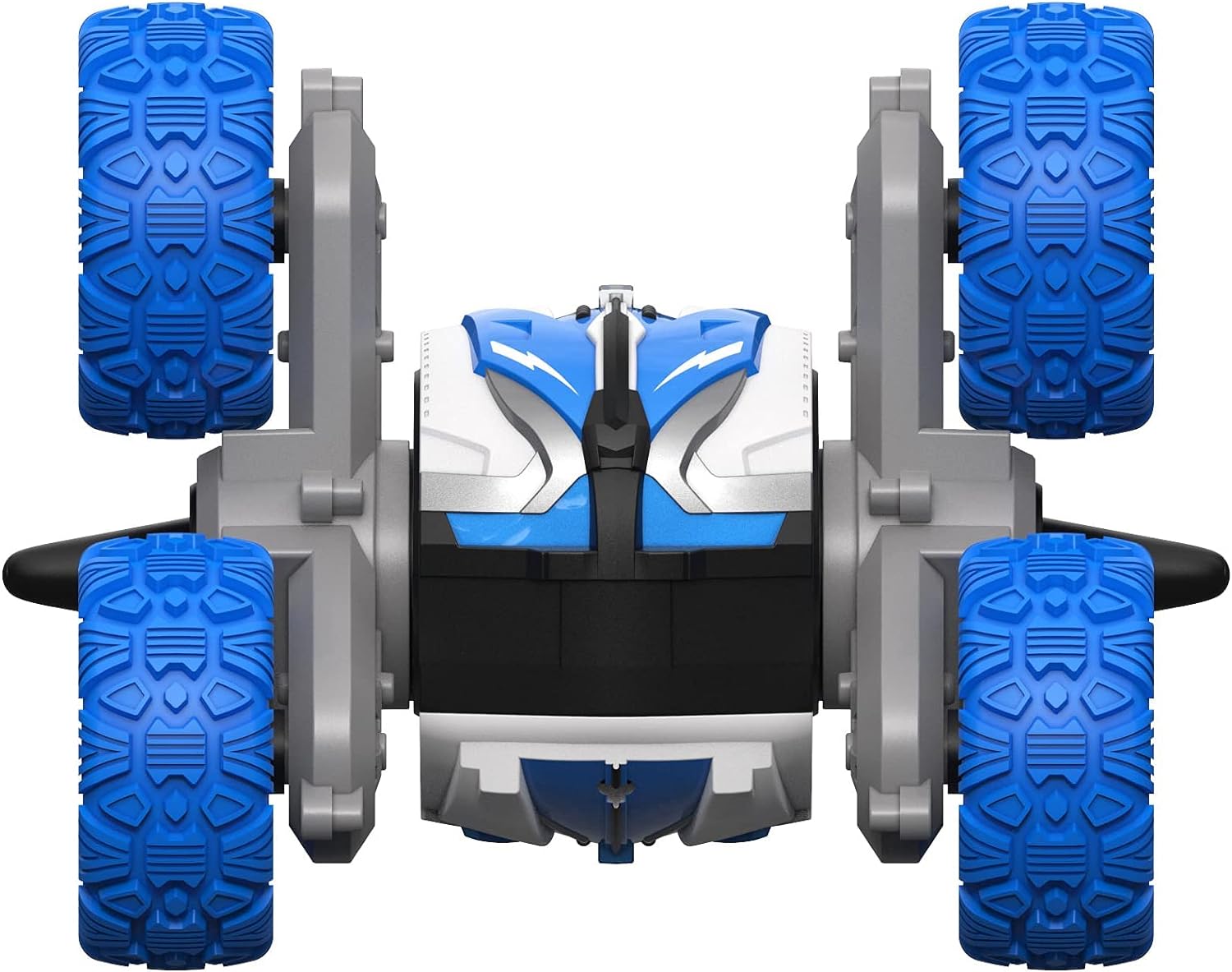 - WATERPROOF STUNT CAR:In addition to the basic skills that ordinary remote control cars should have, the car is waterproof,that can also roll and rotate in place at 360 degrees and drive on double sided. When the car encounters a small obstacle, use the remote control to make the car roll or double-sided Driving can easily pass obstacles, and at the same time, this function can also suddenly reverse in fast motion to make the toy car instantly turn into a dance car on the land or water.///The remote is not waterproof!!!