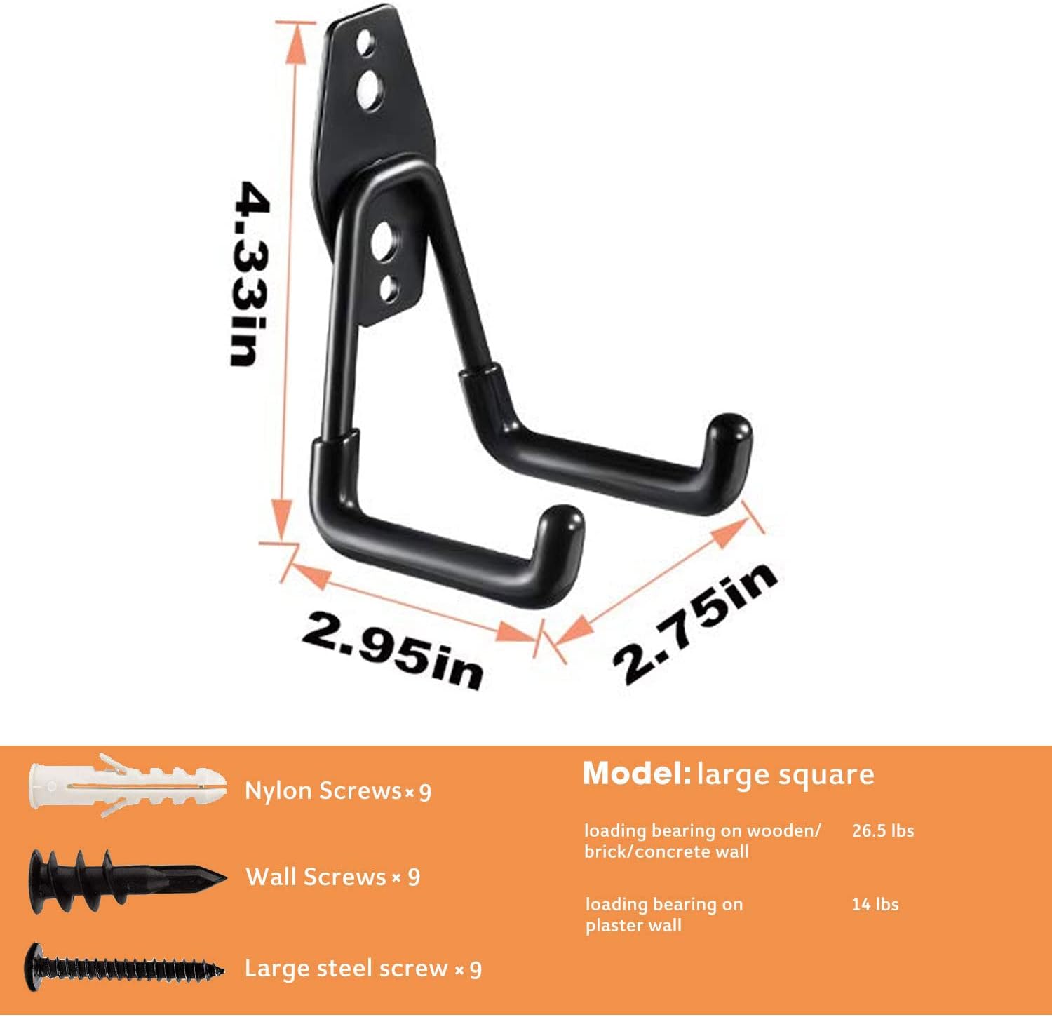 - 【EASY TO INSTALL】 These garage hooks are suitable for plaster, wood, brick, and concrete walls. You can install them effortlessly. just place the tip of plastic anchors on the spot you marked and fasten the screw by using screwdriver.