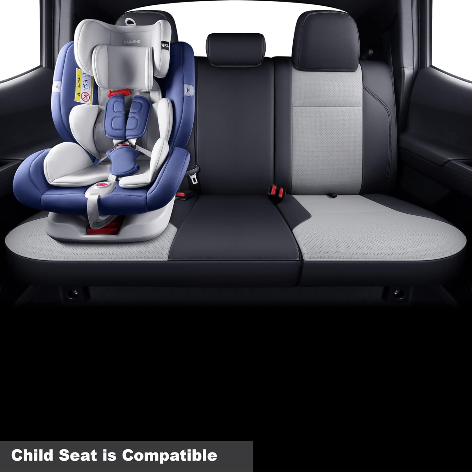 LUCKYMAN CLUB Tacoma Custom Fit Seat Covers for 2016-2023 Tacoma Crew Cab with Faux Leather (Black & Gray)