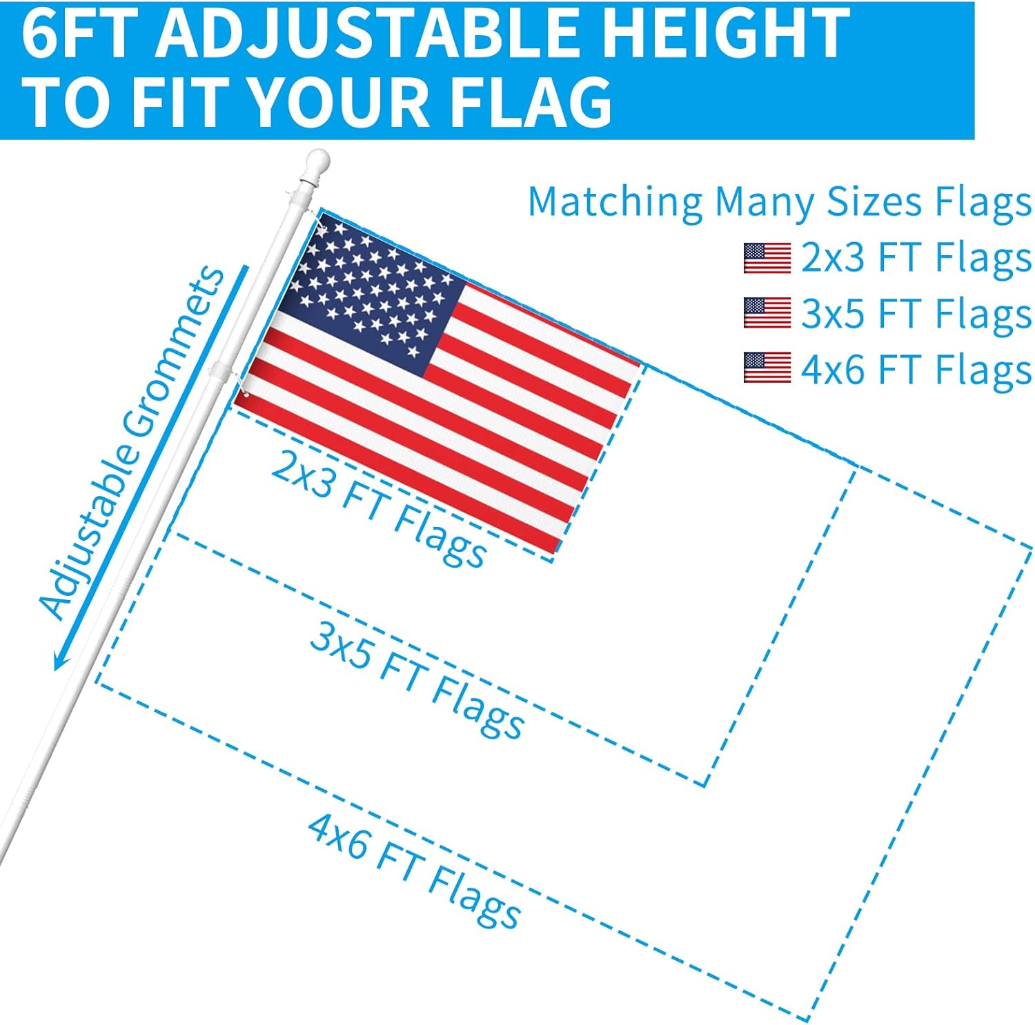 - Adjustable Length: The flag pole kit is equipped with multiple parts. Its length can be adjusted between 1.3 feet and 6 feet (2ft/3ft/4ft/5ft/6ft) to meet your various requirements and different size flags