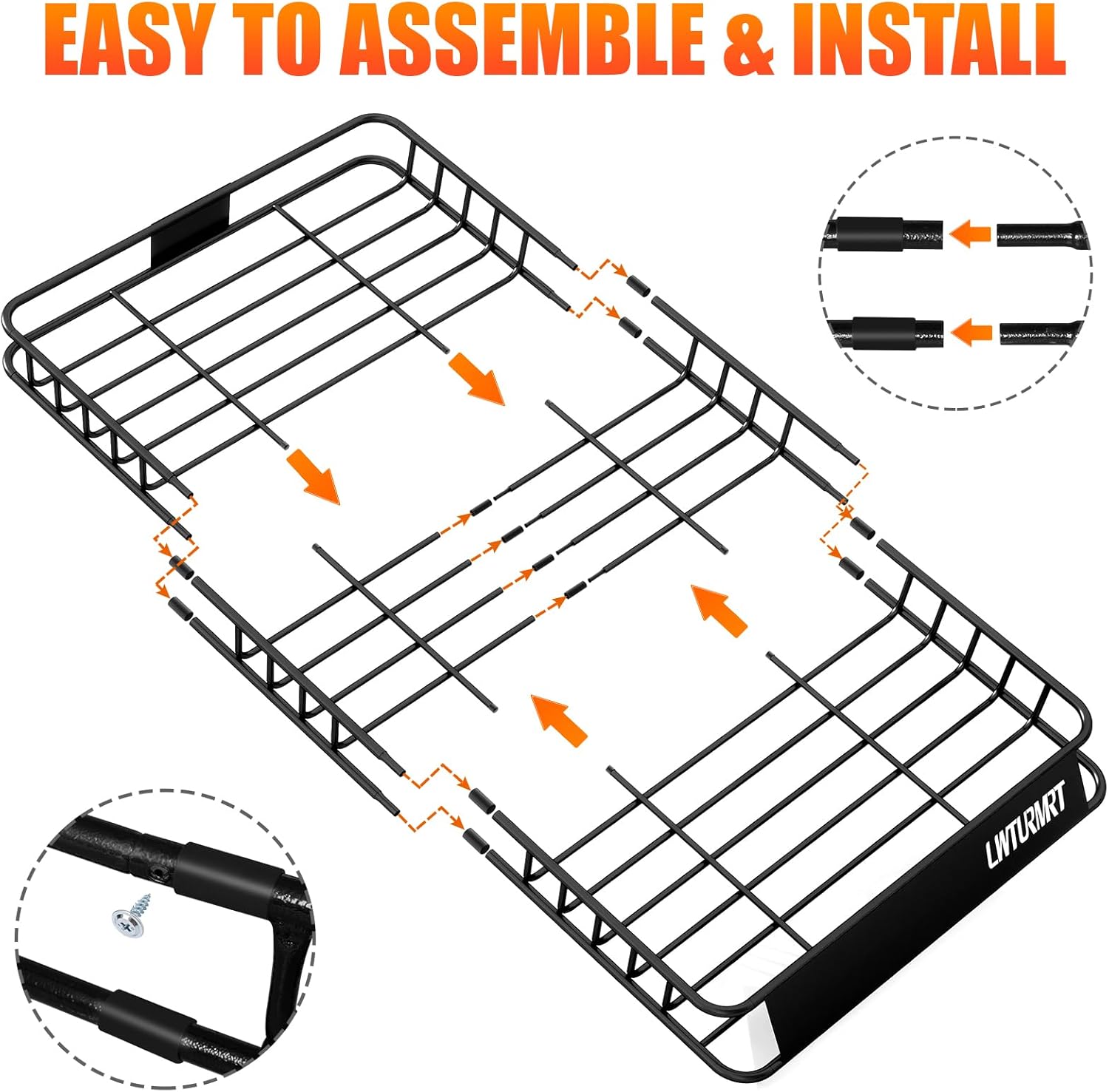 - ăInstallation and Applicabilityă:This roof rack basket adopt three section assembly structure, it is more stable and easy to install with fewer sections connected together, and is equipped with a manual for easy access.And the roof cargo carrier refer to extra luggage, camping equipment, cargo bags and more.