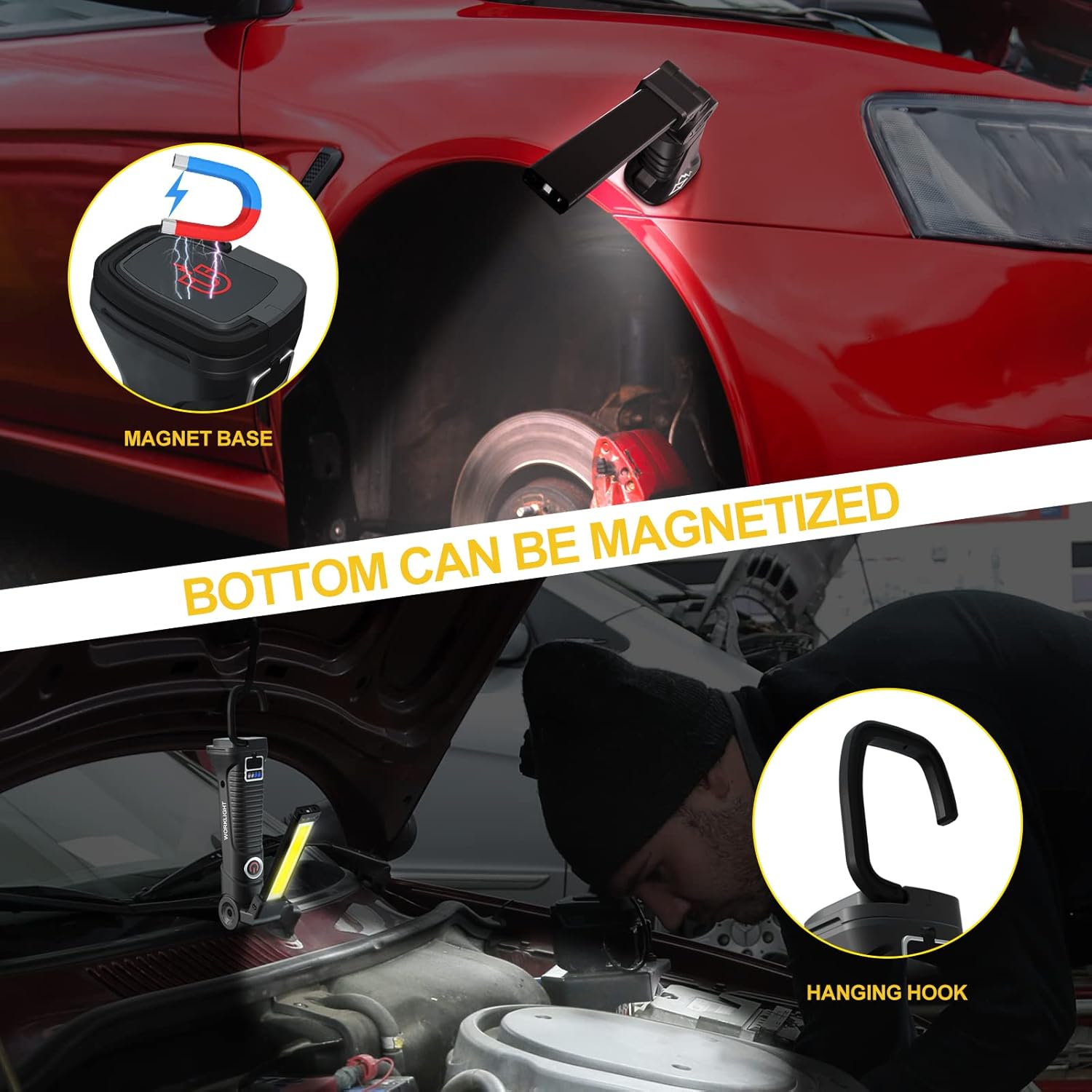 Tool Gifts for Men Dad LED Work Light, 4 Pack Rechargeable Flashlight with Magnetic Base & Hook, Battery Display, 360° Rotation, 5 Modes Folding Work Light for Mechanics, Garage, Repairing
