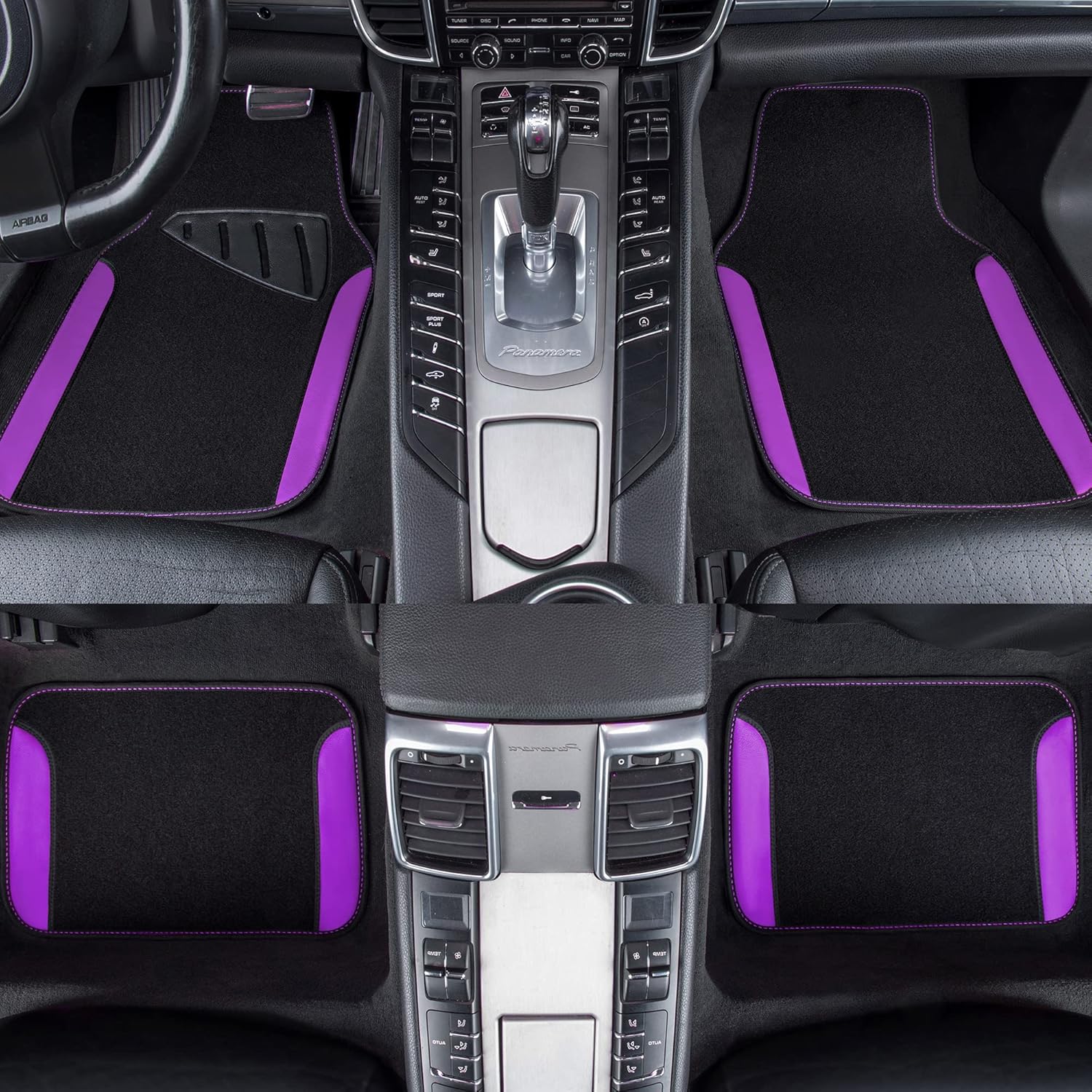 - Fashion and Sporty Color make your car so special and beautiful.Set of two front floor mats and two rear floor mats. Perfect size to fit most sedans, crossovers,SUVS,Trucks and Vans.