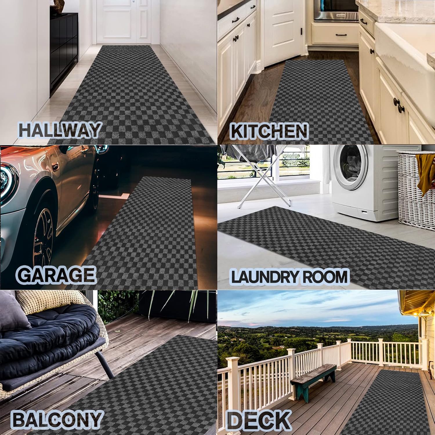 Custom Size Backed Non-Slip Area Rugs Runner, Easy Clean, Waterproof Runner Rugs for Hallway Entryway, Kitchen, Laundry, 3FT x 46FT, Gray Checkered