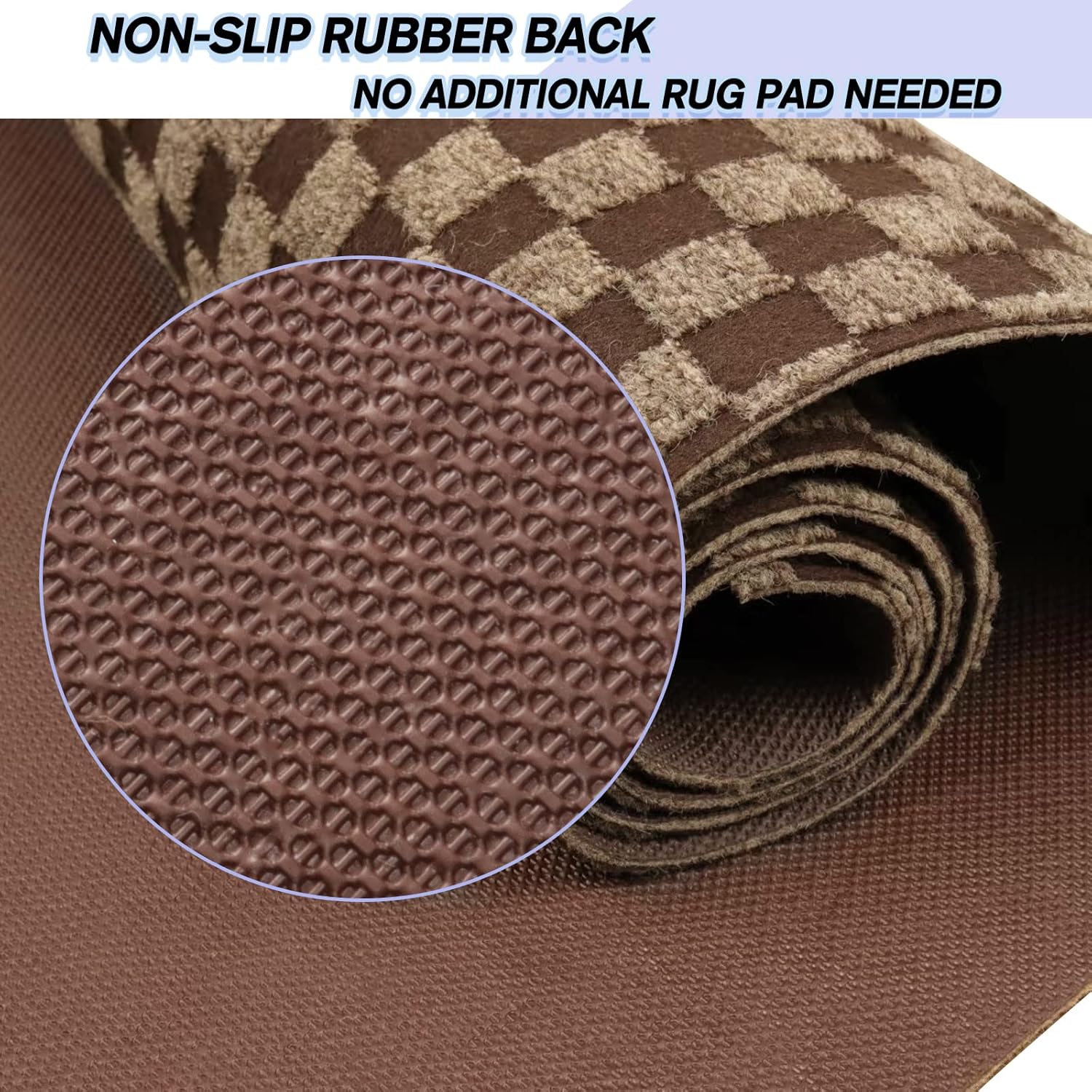 Custom Size Backed Non-Slip Area Rugs Runner, Easy Clean, Waterproof Runner Rugs for Hallway Entryway, Kitchen, Laundry, 3FT x 23FT, Brown Checkered