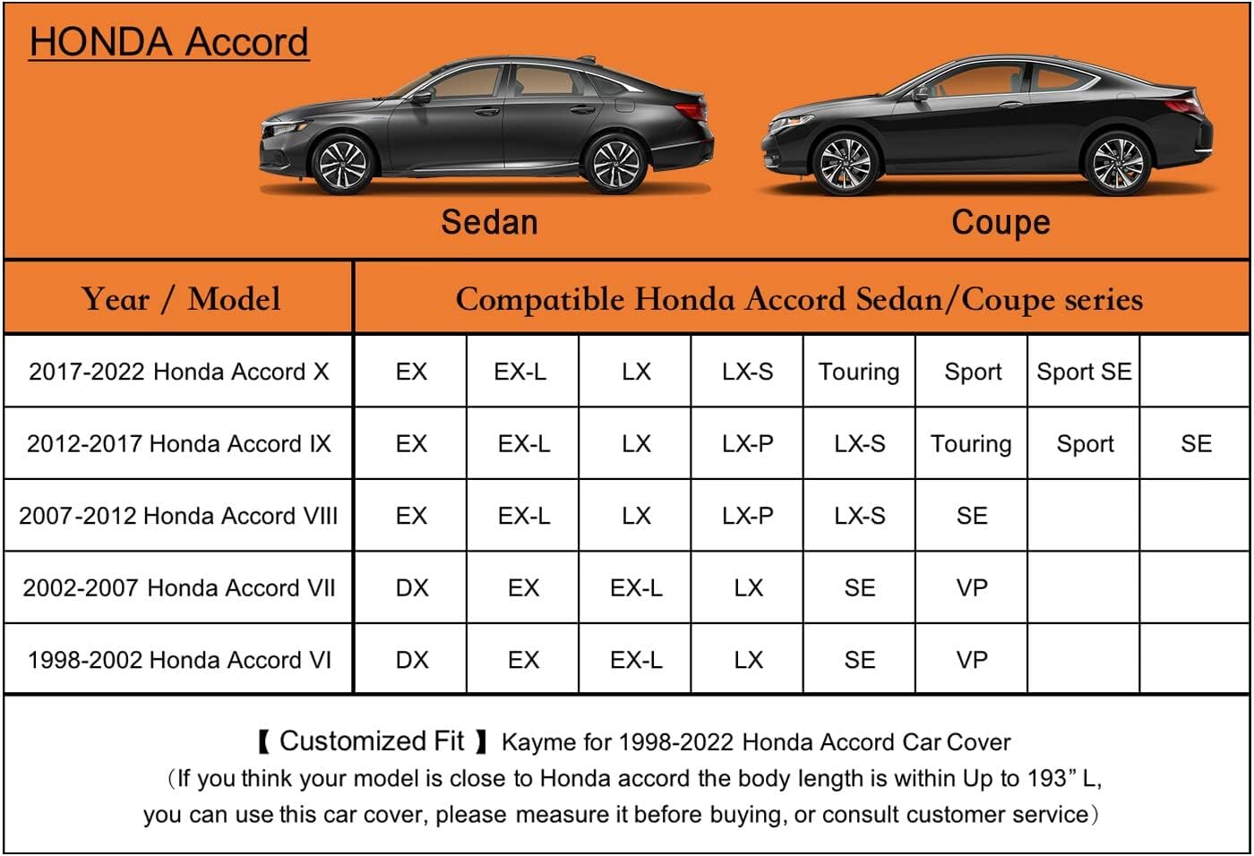 - ăSuitable foră-Customer fit for Honda Accord sedan/coupe(2001-2025). Come with a large enough portable bag to store your cover when you do not use.