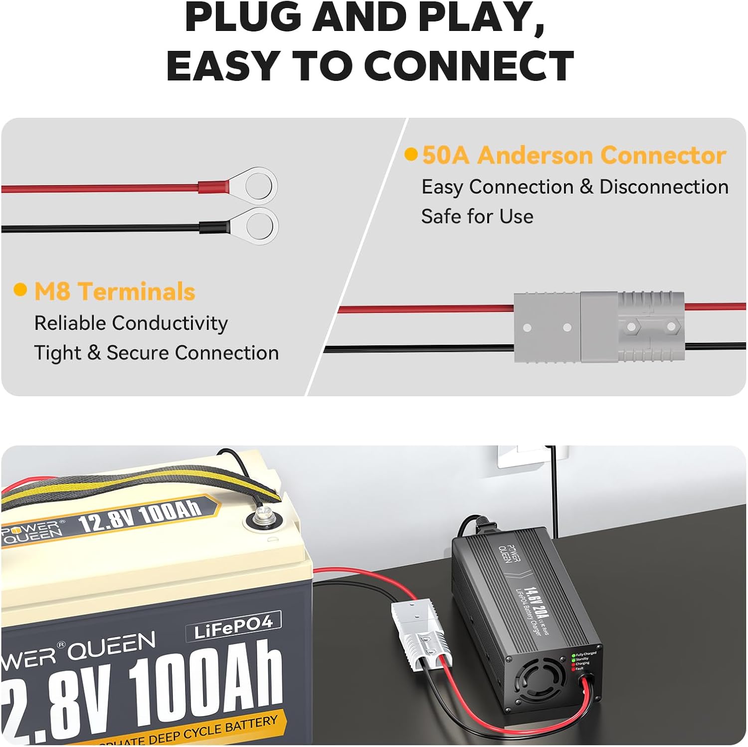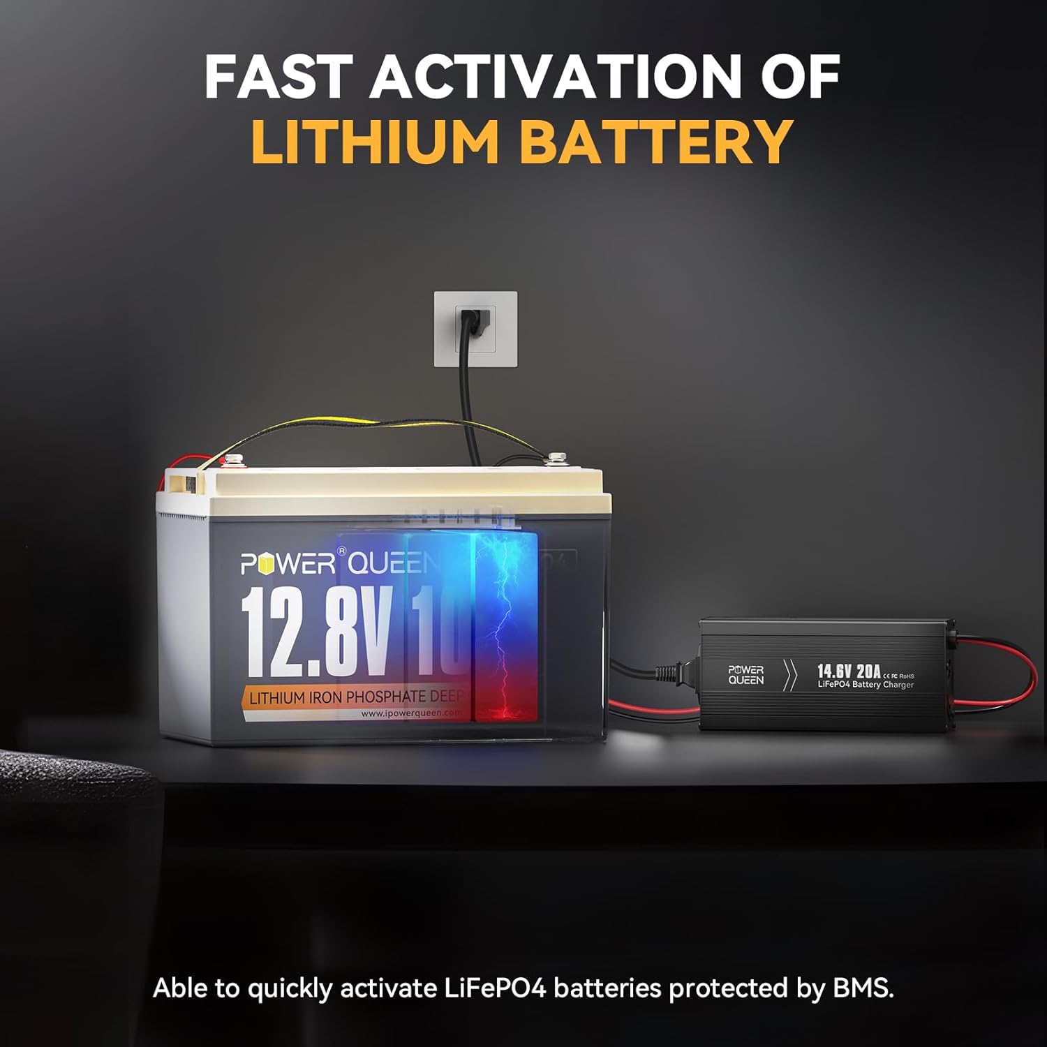 - 【12V LiFePO4 CHARGER】Power Queen Smart LiFePO4 charger designed for 12V (12.8V) LiFePO4 batteries. Our charger supports 0V charging function to reactivate 0V battery. Charging Specs: 14.6V | Charging Current: 20A | Rated Input Voltage: 100V-240V AC; 50Hz to 60Hz.
