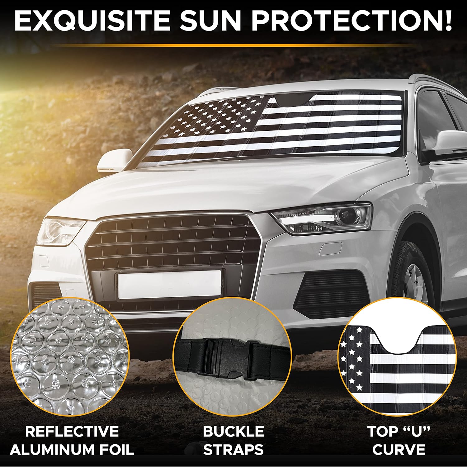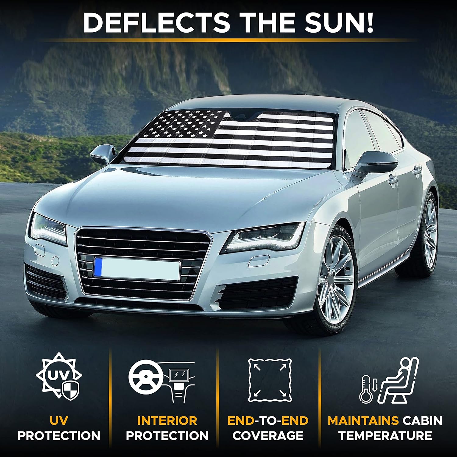 EcoNour Accordion Car Windshield Sun Shade American Flag Design | Reflective Car Window Shades for UV Protection & Heat Block | Foldable Sun Shield for Front Window | 58 x 27.5 Inches