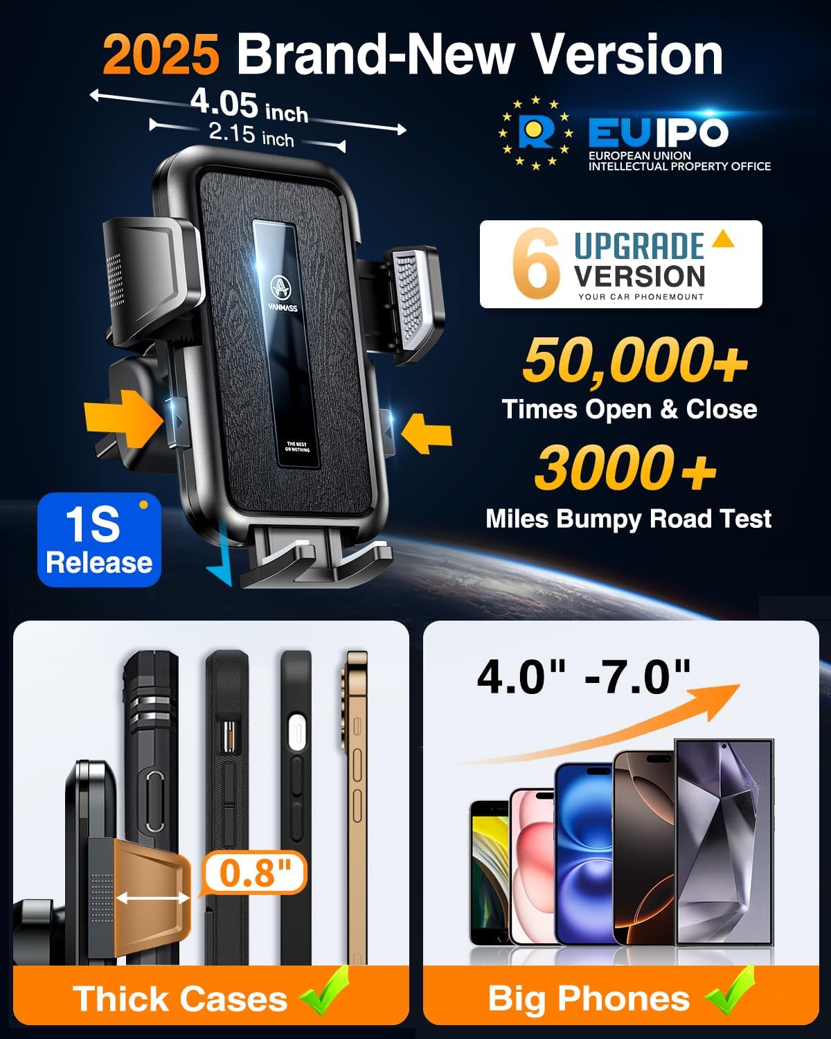 VANMASS 2025 Upgraded Car Phone Holder, [85+LBS Strongest Suction] Patent Safety Cell Phone Mount Windshield Dashboard Vent Truck Accessories Stand Cradle for iPhone 16 Pro Max 15 14 13 Android