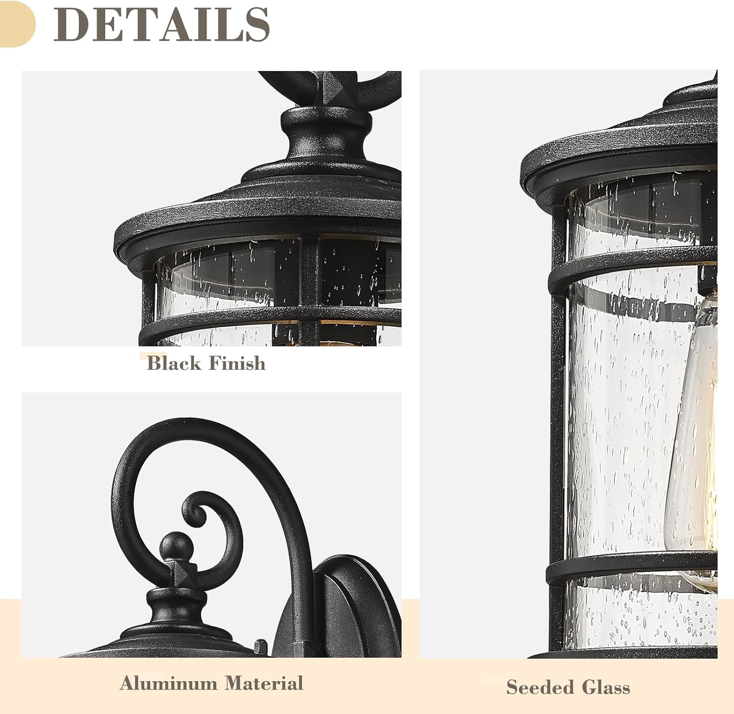 - Weather-resistant and suitable for wet locations, these 2 pack outdoor wall lights features sturdy aluminum construction and seeded glass shade in a black finish