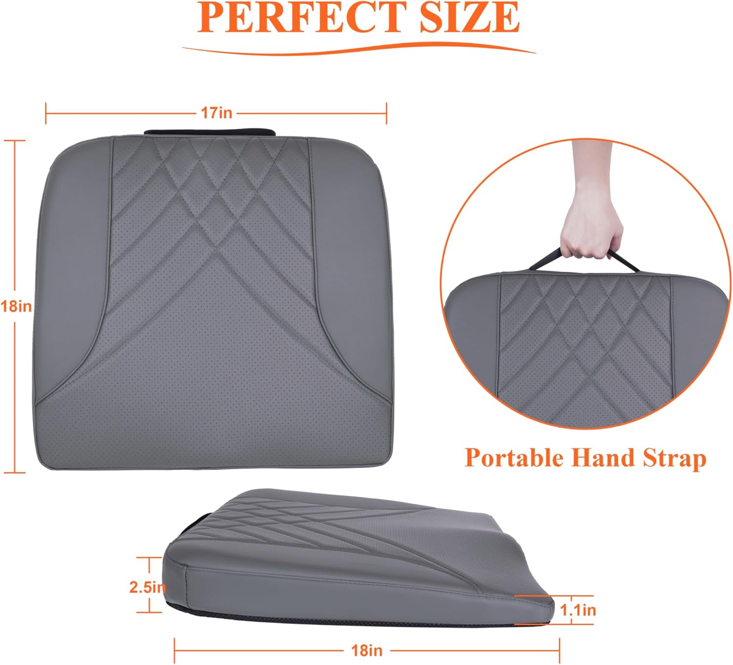 - Upgraded Car Seat Cushion - Classic colors, stylish patterns, and ergonomic design give this car seat cushion for pad for car driver seat a sleek and professional look. We use premium PU leather, which is breathable, durable, and easy to clean. Comfort is everywhere, you can use our seat cushion for truck driver, office chairs, wheelchairs, etc