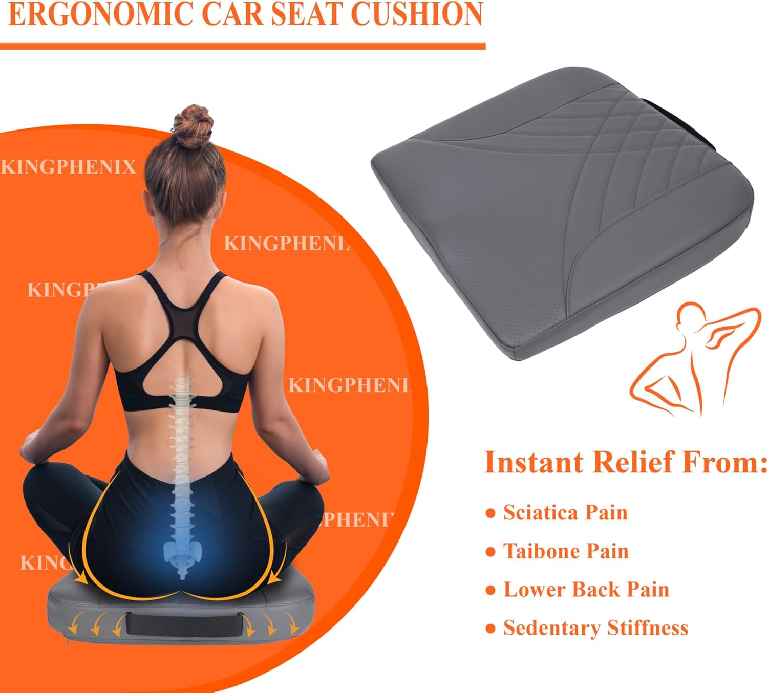 kingphenix Premium Car Seat Cushion, Memory Foam Driver Seat Cushion to Improve Driving View- Coccyx & Lower Back Pain Relief- Seat Cushion for Car, Truck, Office Chair (Dark Grey)