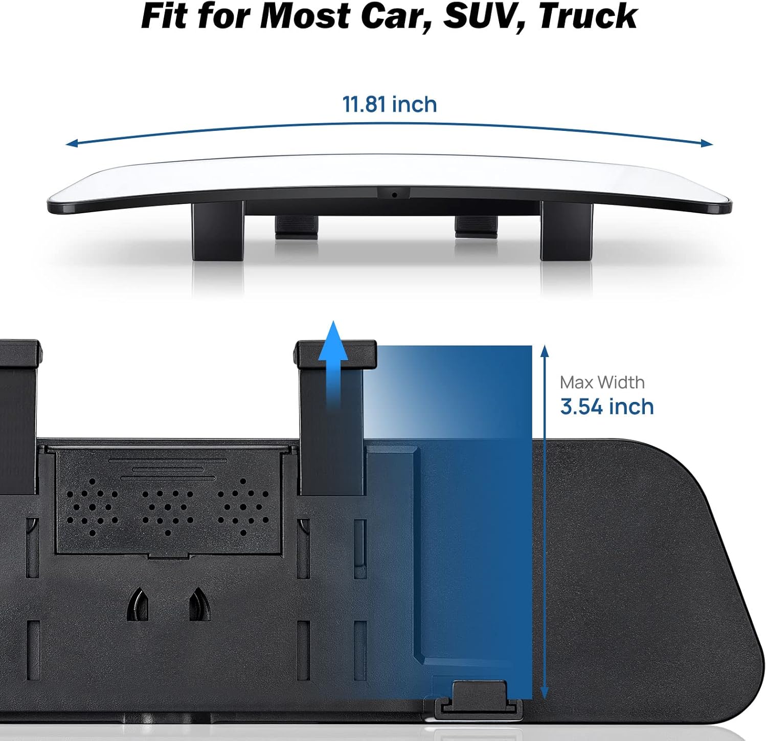 - ăUNIVERSALă: The car clip-on design fits universal vehicles, like a car, SUVs, CRVs, Vans, and trucks. Note: To confirm that this rearview mirror fits your car, please confirm the size before purchasingïŒ the rearview mirror measures 11.8 inches x 2.9 inches (can be extended up to 3.5 inches)