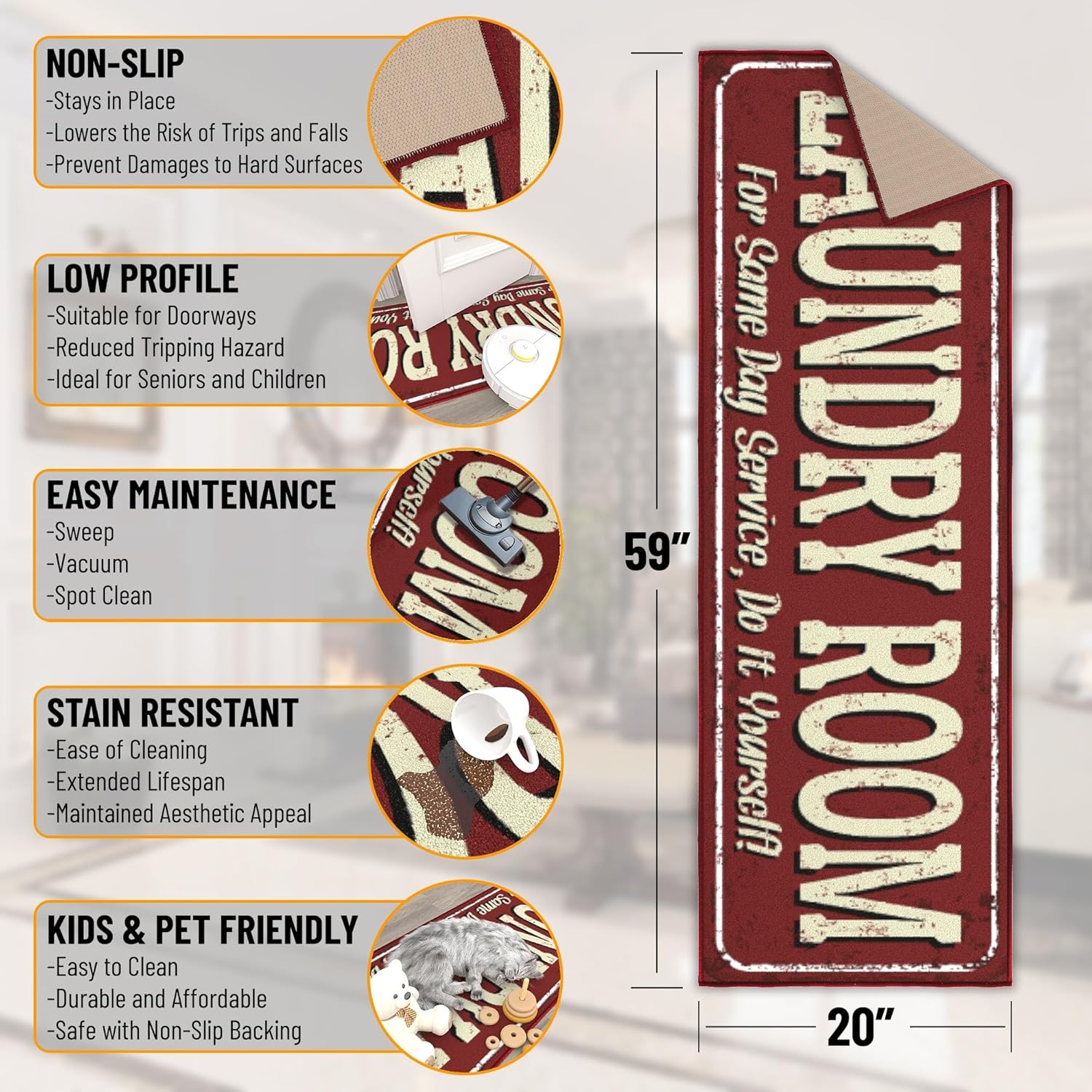 Ottomanson 20" x 59" Laundry Room Rug - Non-Slip Mat for Laundry & Mudroom - Durable, Stain-Resistant, and Easy to Clean - Perfect for High-Traffic Areas - Runner Rug for Entryway Bathroom, Red
