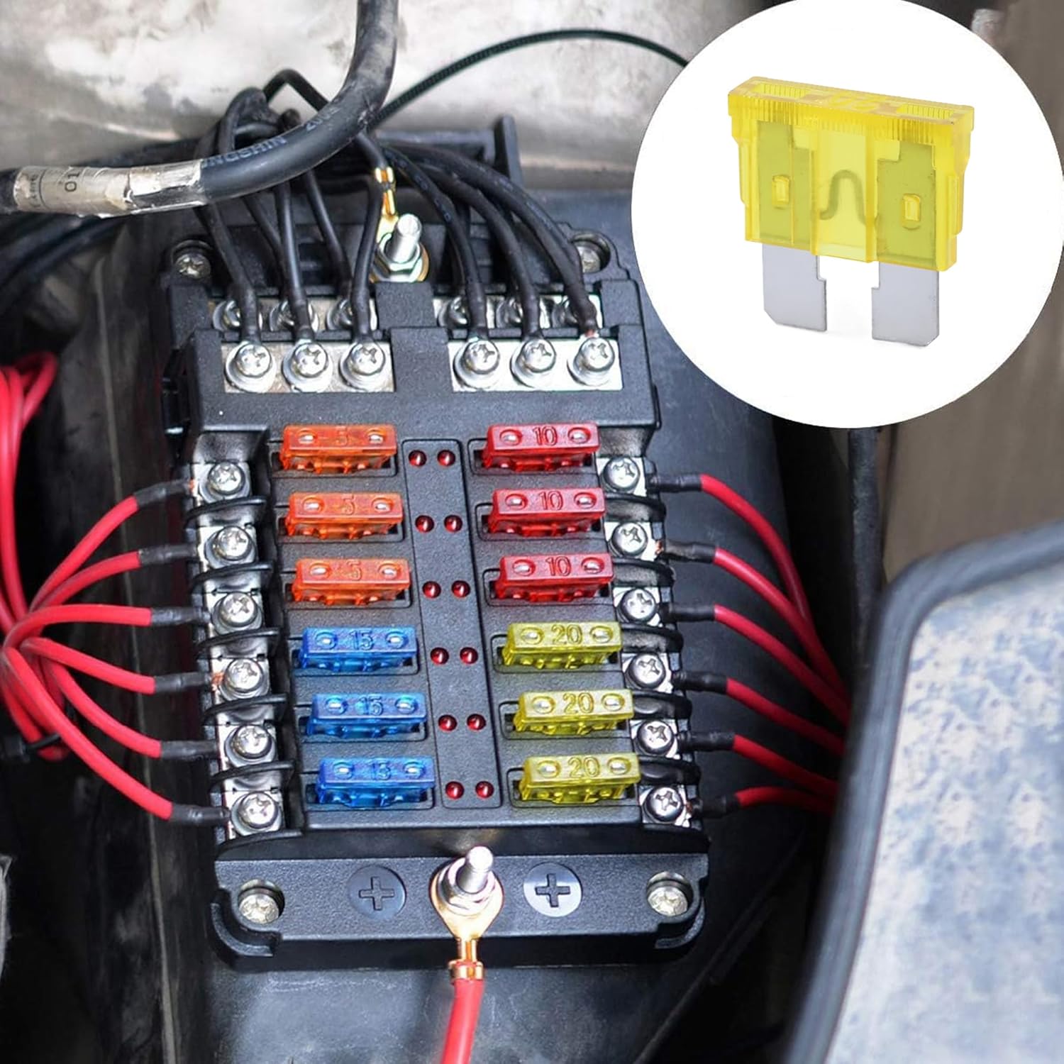 - WIDELY USE - These assorted fuses are specifically designed for Cars, Trucks, SUVs, ATVs, UTVs, Camper RV, Motorcycles, Fleet, Golf Car, Boat, snowmobiles, and most general DC applications etc., covering such components as radio, light, turn signals, etc.