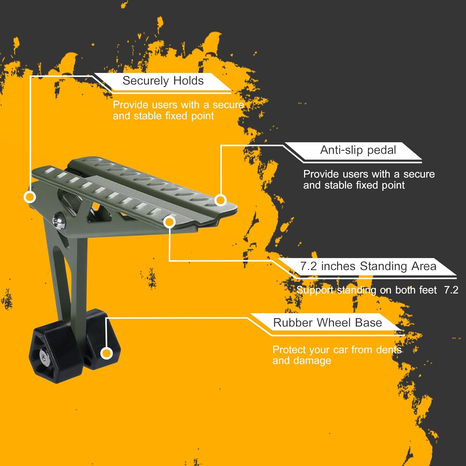 - Reach to Roof- With a height 4"-6" higher than competitors, the pedal facilitates easy access to the rooftop. Our car door step proves indispensable for loading and securing cargo boxes, kayaks, canoes, bicycles, ski racks, skis, and even cleaning the roof of your car!