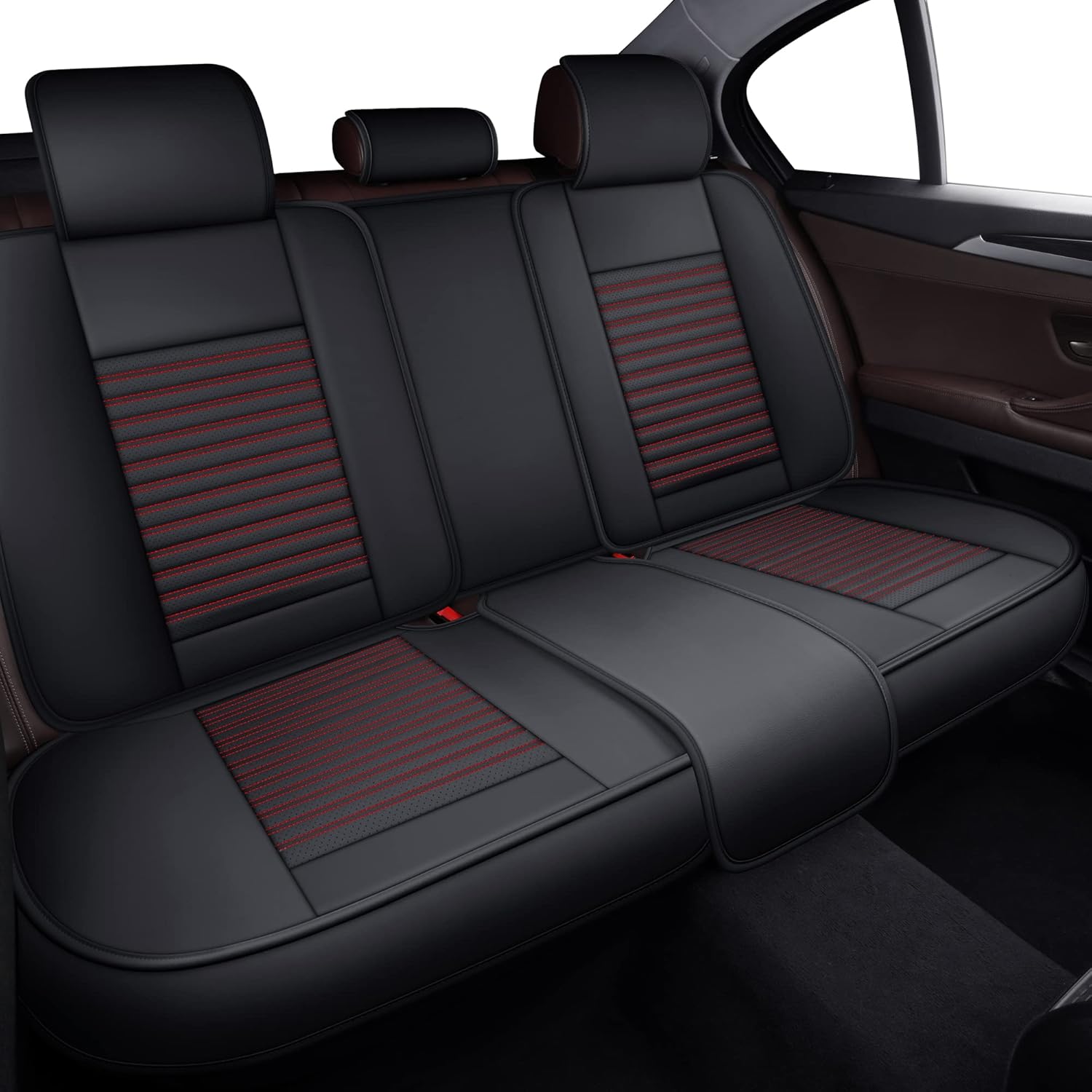 LINGVIDO Leather Car Seat Covers,Breathable and Waterproof Faux Leather Automotive Seat Covers for Cars SUV Pick-up Truck Sedan,Universal Anti-Slip Driver Seat Cover with Backrest (Rear Seat, Red)