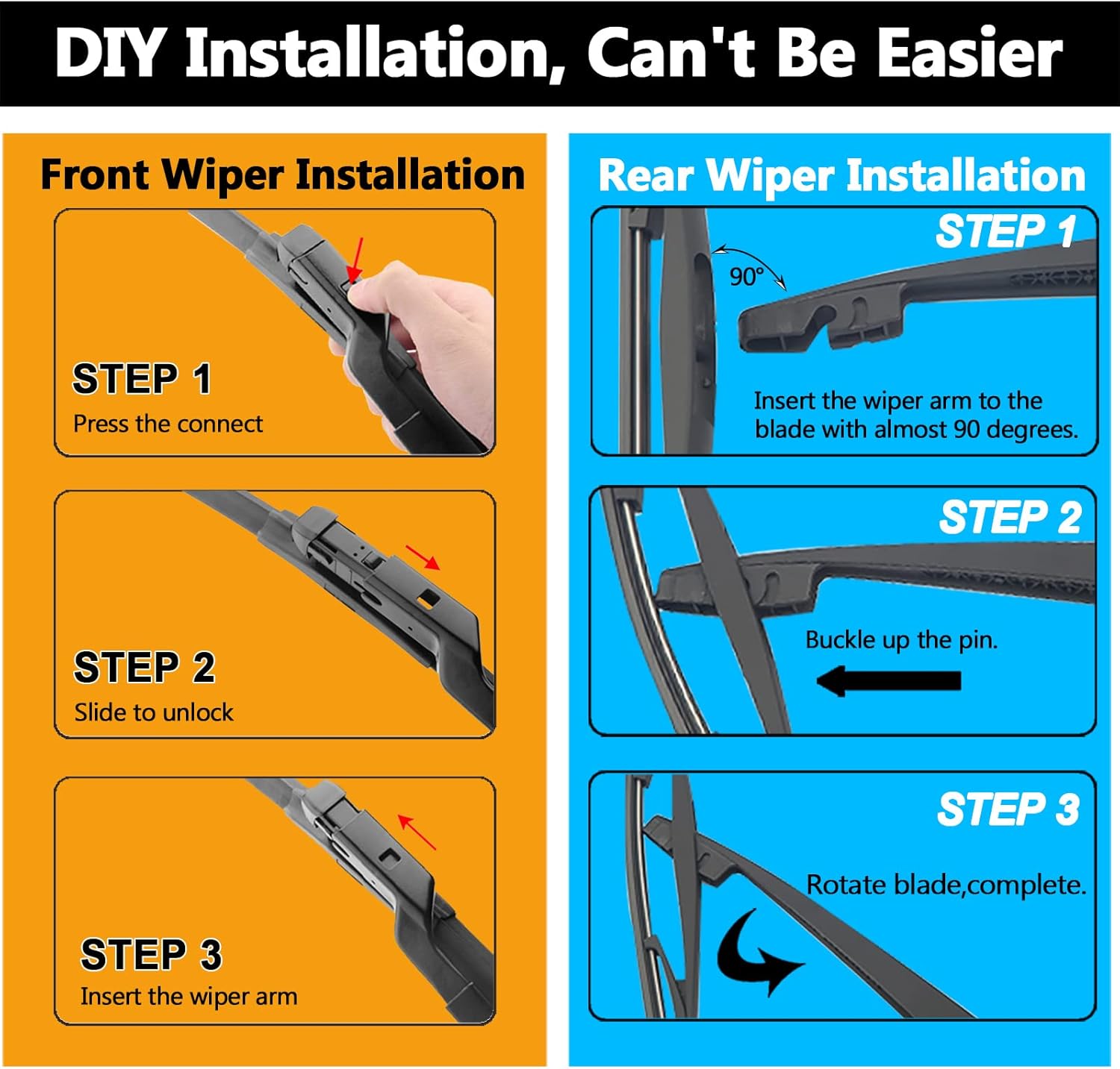 - EASY-TO-INSTALL: Quick and easy to install. fit perfect to your car, like the original parts. Itβs installed to the wiper arm by top lock.