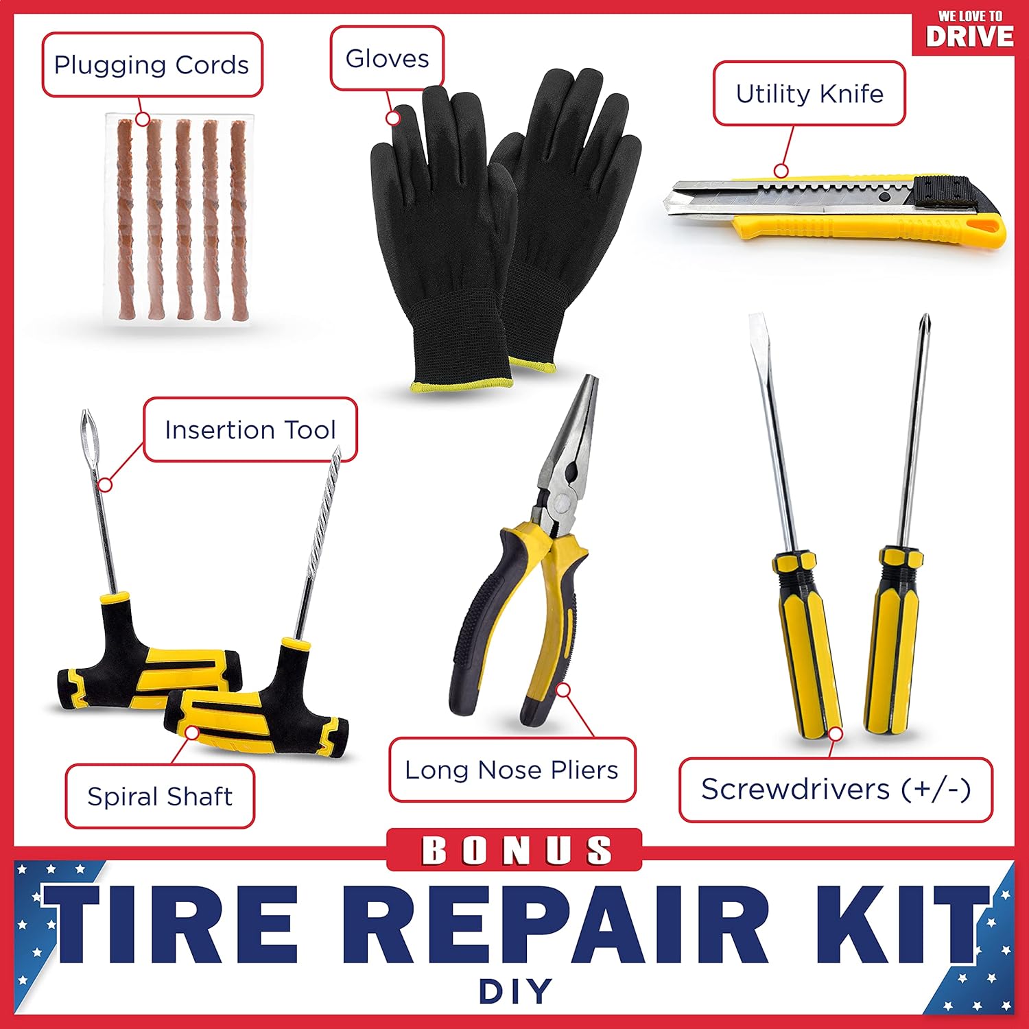 - Ultimate Tire Repair Kit for Emergencies Stay equipped for any situation with this 12 Volt Air Compressor kit. Featuring a powerful tire air pump, a tire gauge, and a professional-grade tire repair kit with plugs, this versatile set tackles any flat tire repair kit emergency. The Tire Repair Kit with Compressor offers essential tools for quick fixes, ensuring you’re ready for the road. Compact and lightweight, it’s the ideal road trip essentials for adults. Perfect to fix a flat in minutes!