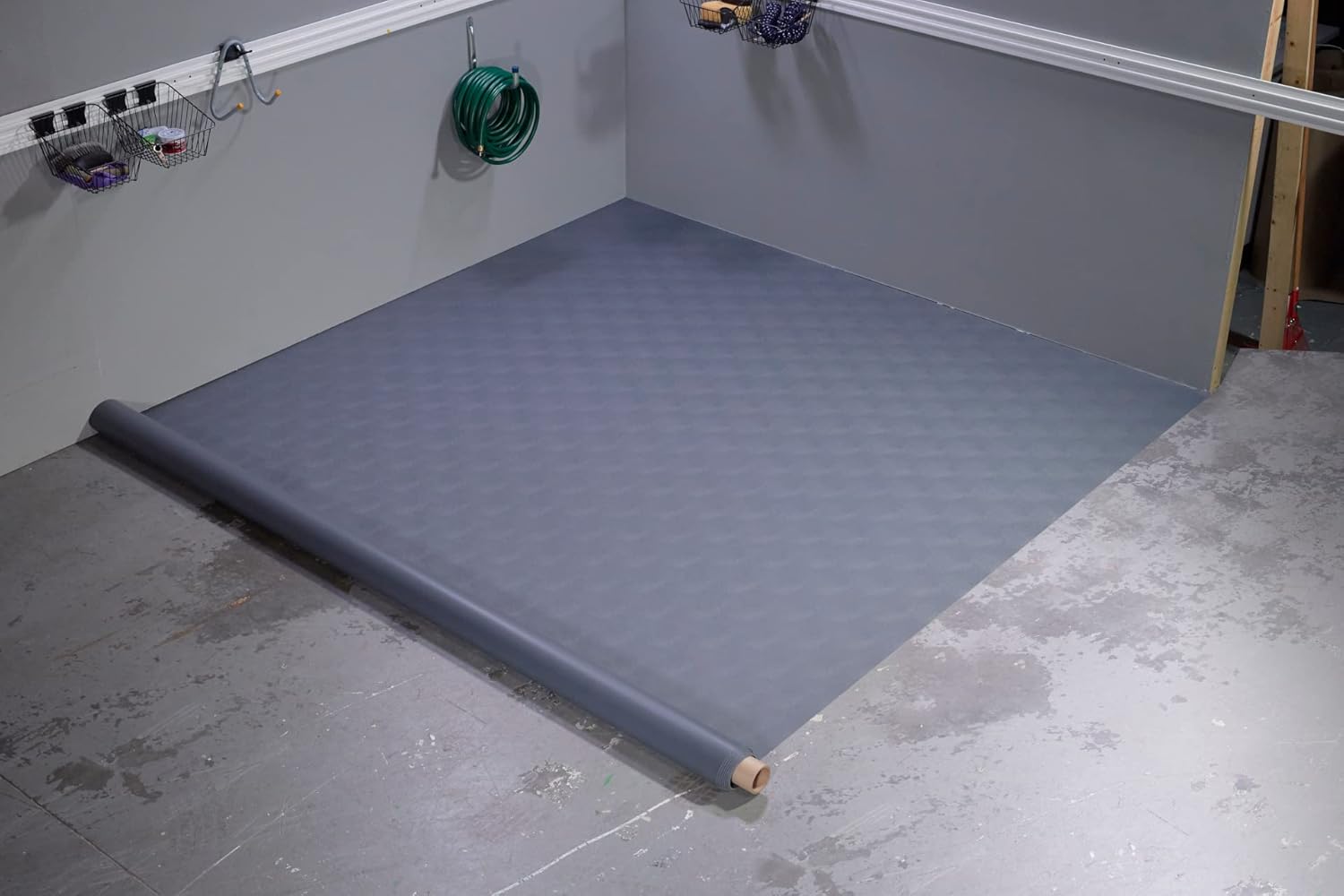 G-Floor Seamless Sheet Vinyl Shed Flooring Cover with Bonded Fibrous Backing - Levant Pattern (8' x 20', Slate Grey)