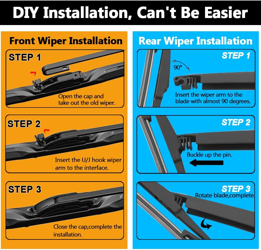 - ăWHAT YOU GETăComplete set of 3 wiper blade : 22"+21"+11" (Left and right and Rear),12-month worry-free warranty and friendly customer service.