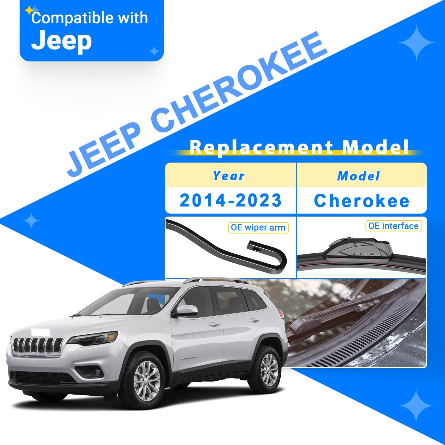 - {FITMENT}: Replacement for 2014 2015 2016 2017 2018 2019 2020 2021 2022 2023 Jeep Cherokee 26inch + 18inch front with 14inch rear windshield wiper blades.